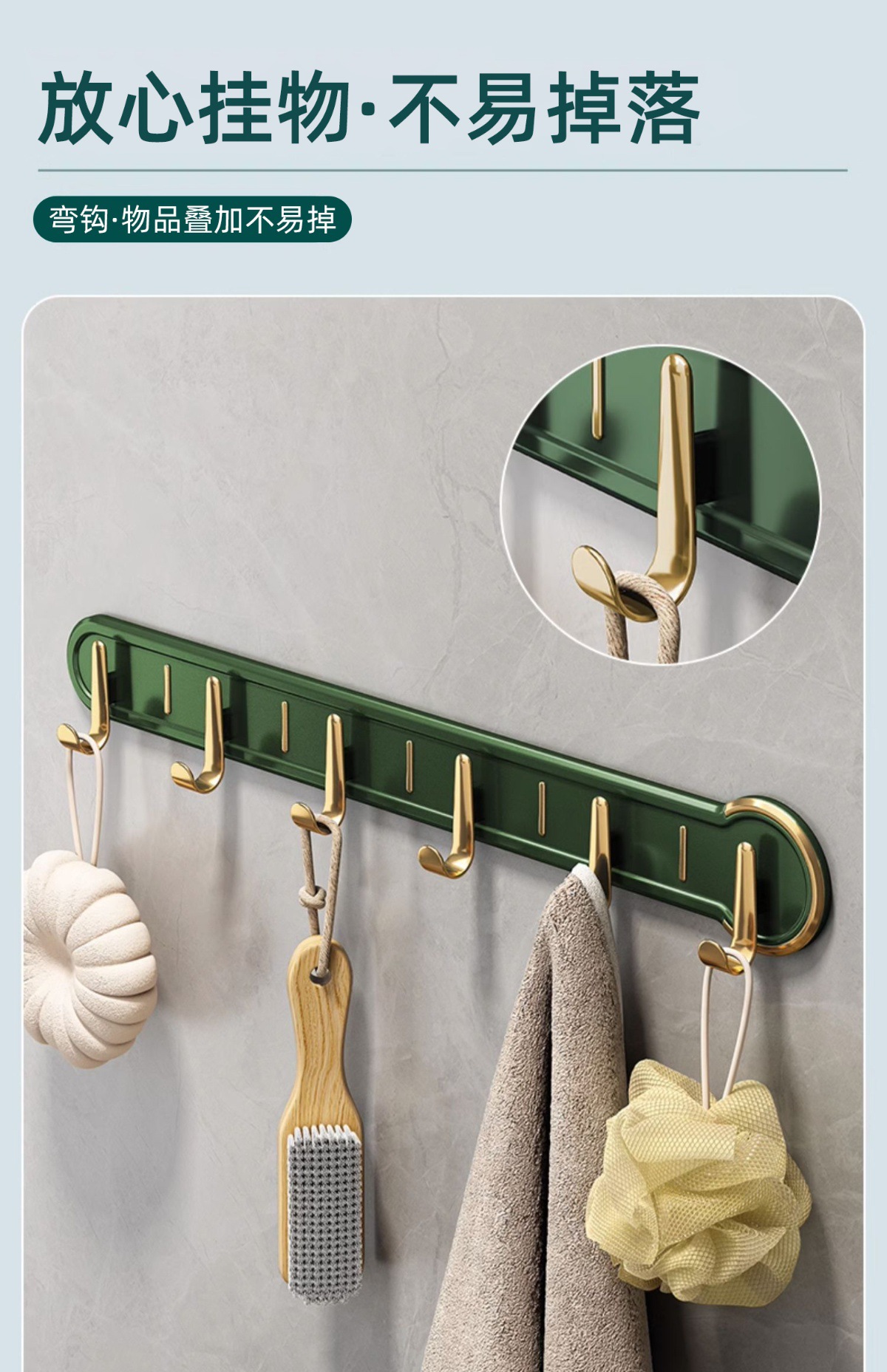 [light luxury row hook 3 hooks] dark green