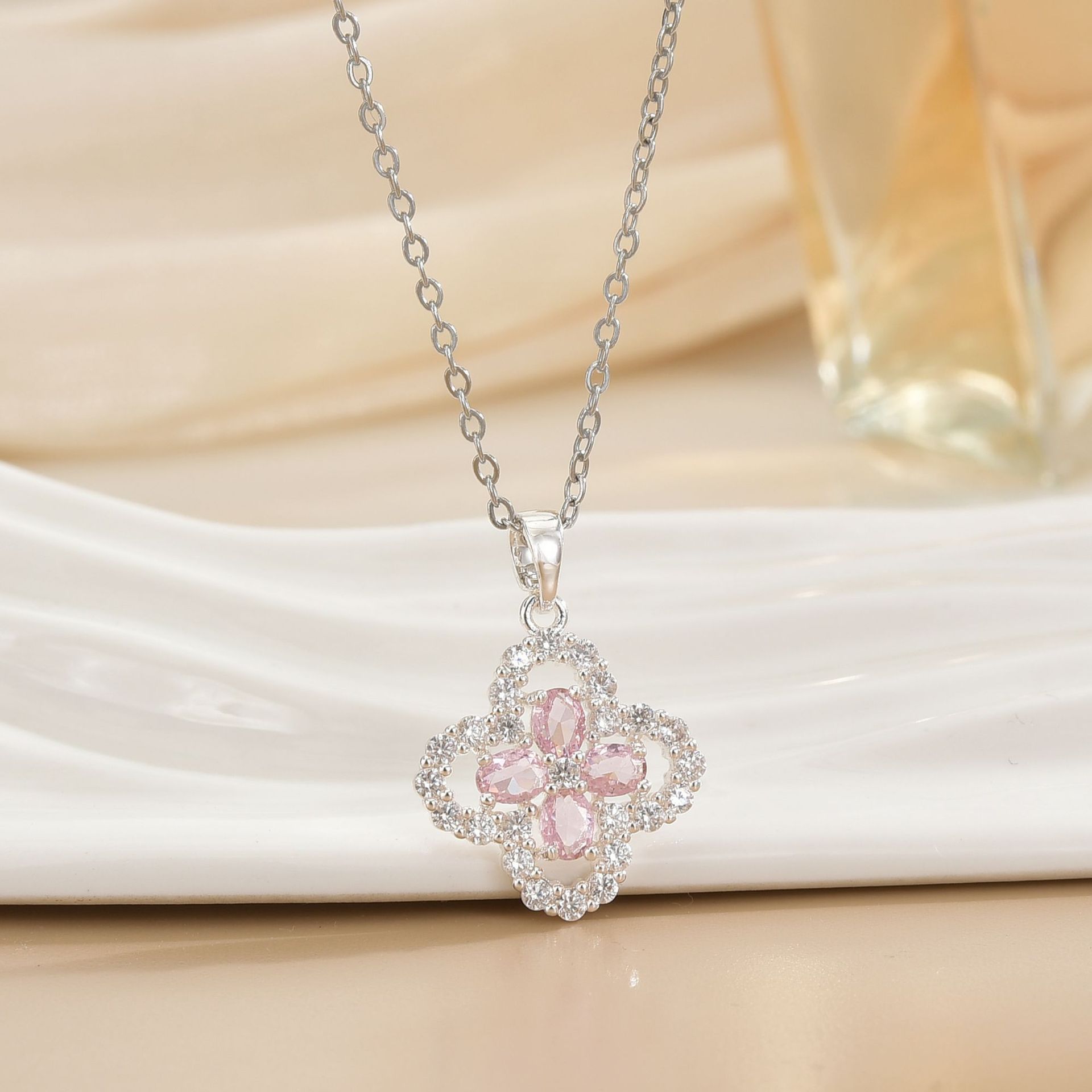 europe and america cross border clover zircon clavicle chain necklace for women affordable luxury fashion elegant high-grade non-fading clavicle chain 中文版