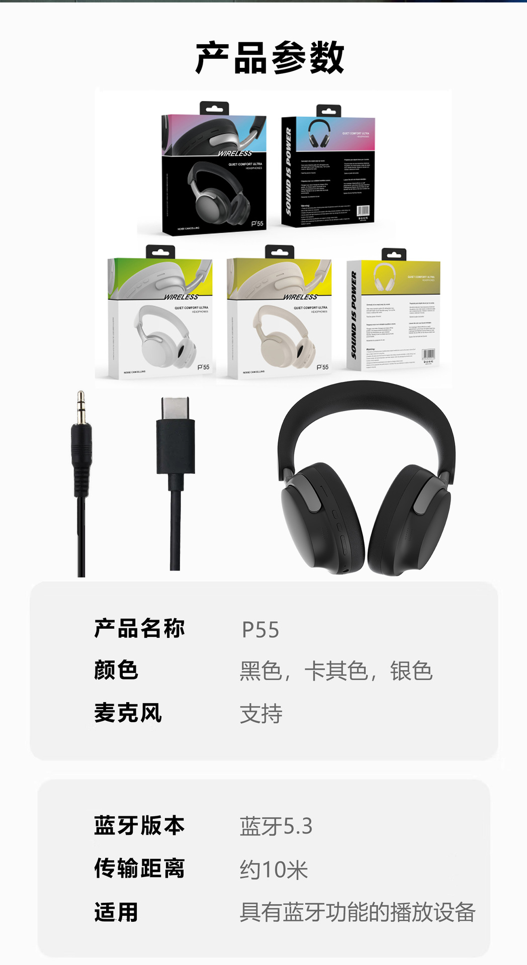 popular p55 headset 3d stereo all-inclusive earmuffs wireless bluetooth 5.3 card-inserting dynamic bass boost music headset 中文版