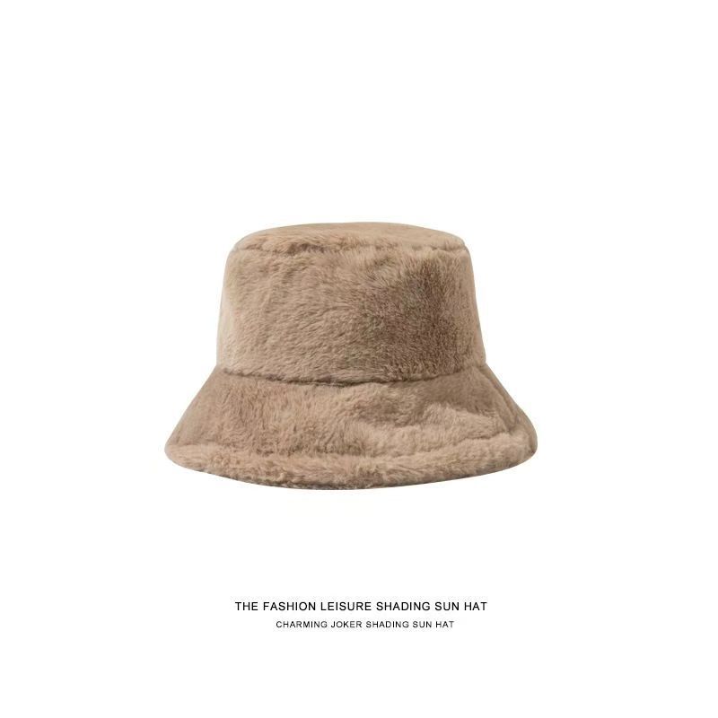 glossy rabbit fur bucket hat-khaki