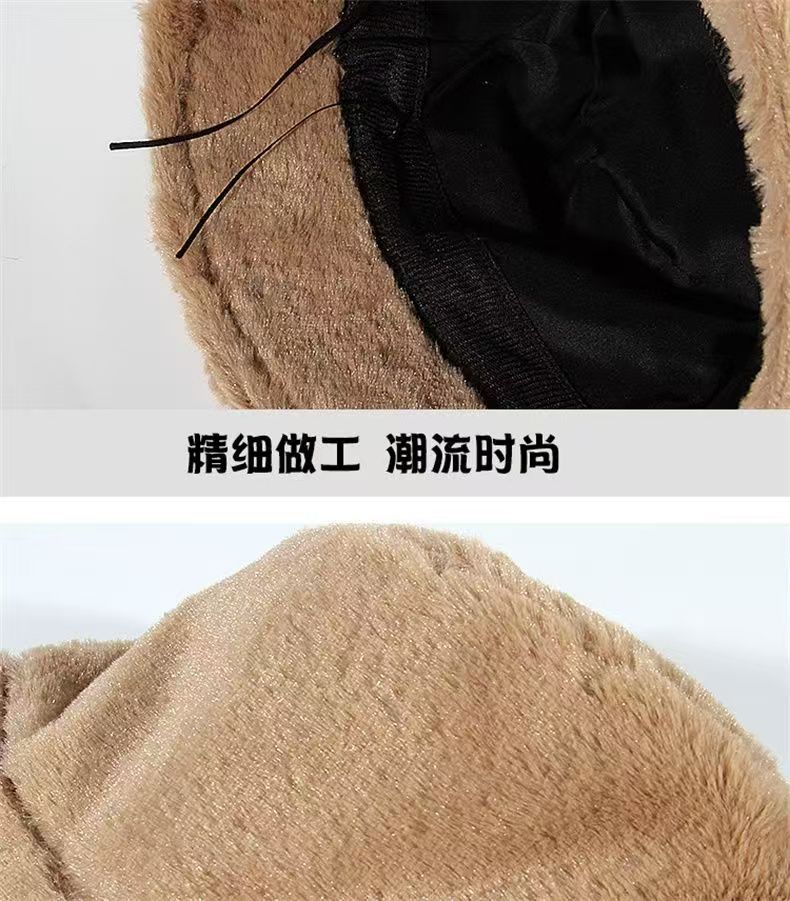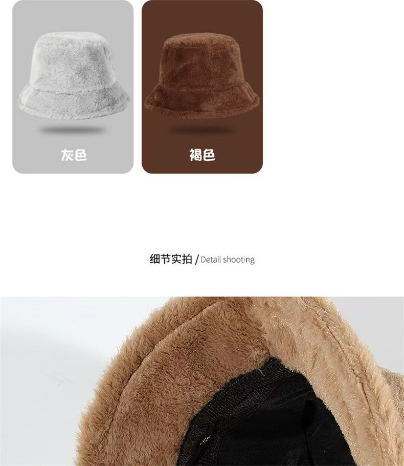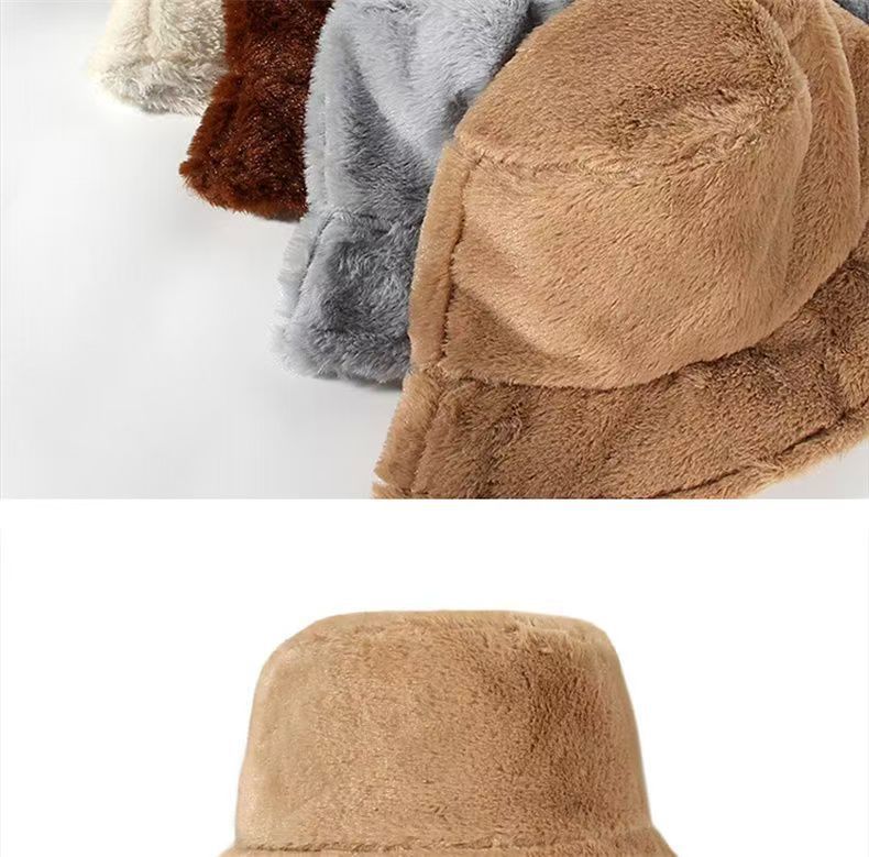 glossy rabbit fur bucket hat-beige