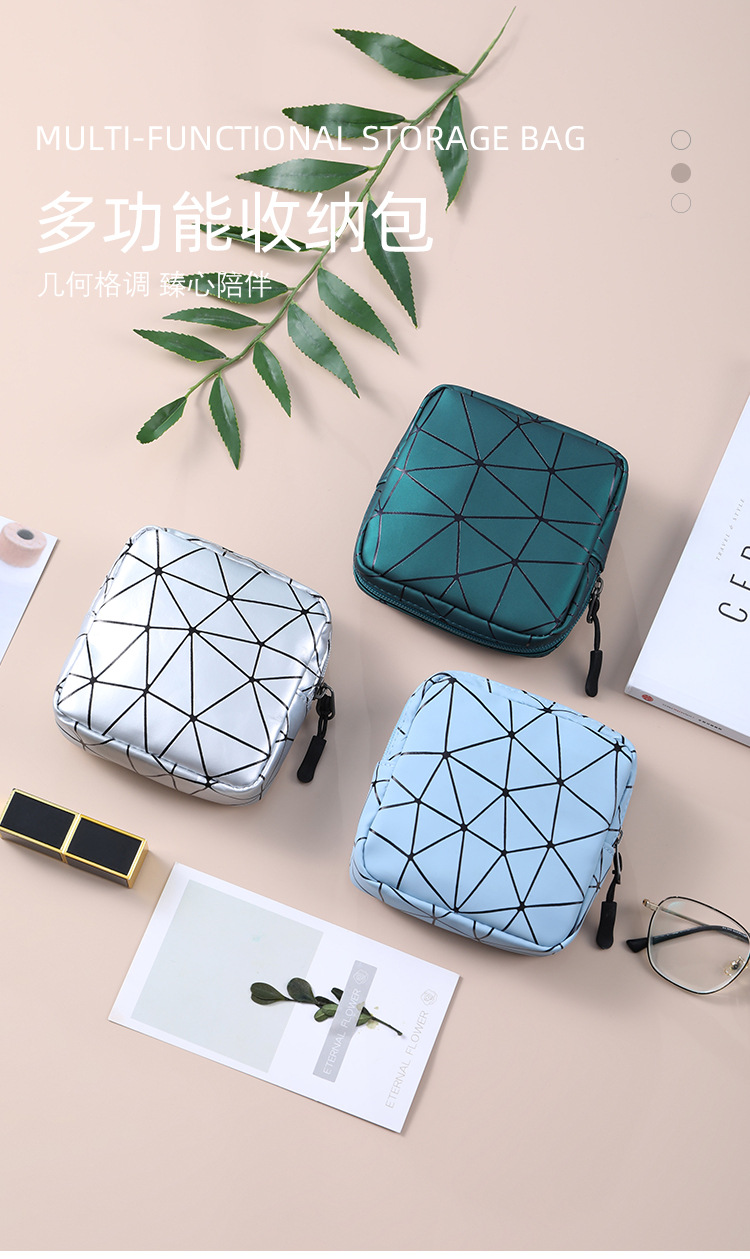 Sanitary Napkin Storage Bag Diamond PU Leather Mat Portable Buggy Bag Sanitary Pads Bag Portable Coin Purse Small Bag 中文版