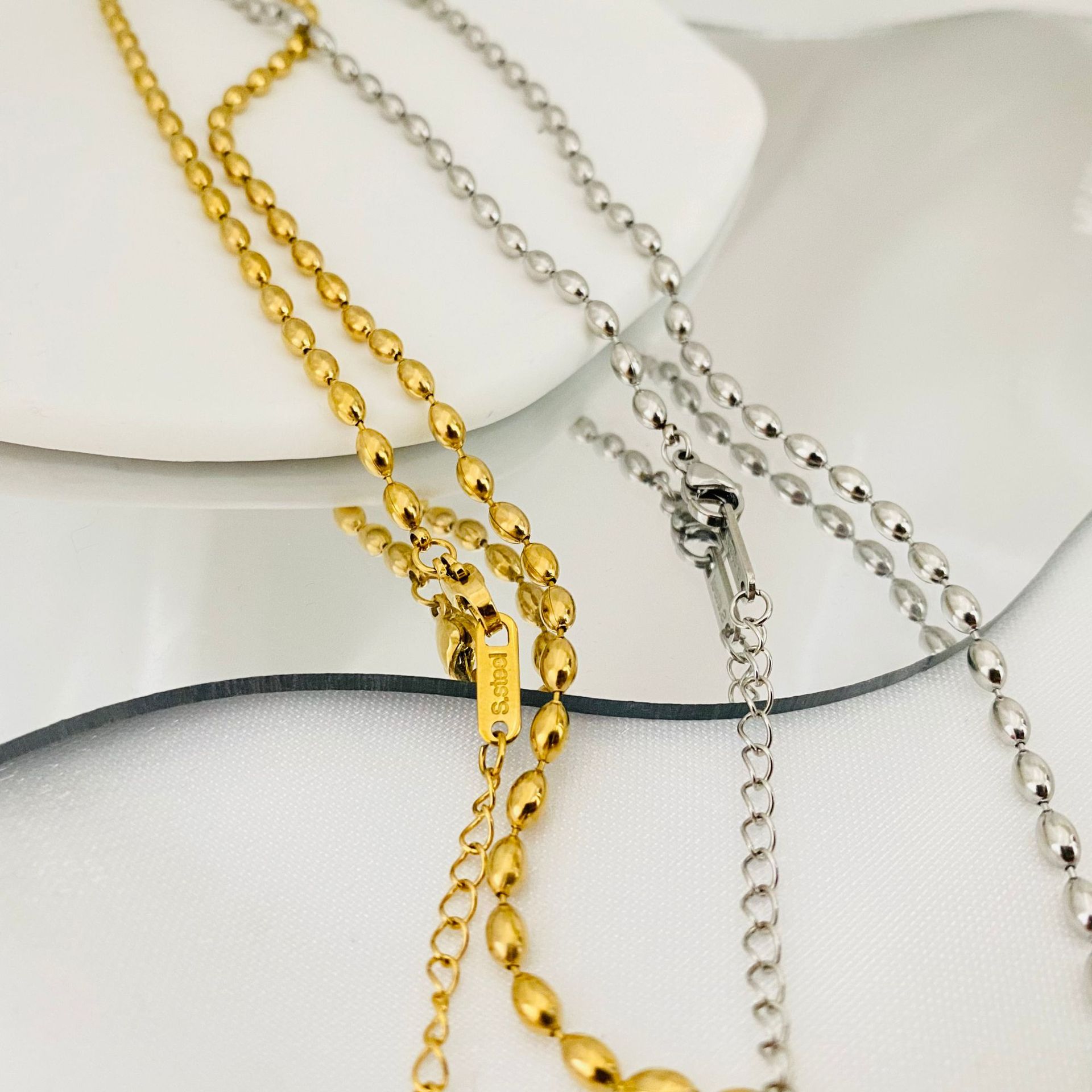 titanium steel rice bead chain clavicle necklace 18k real gold furnace electroplating choker diy necklace exquisite 中文版
