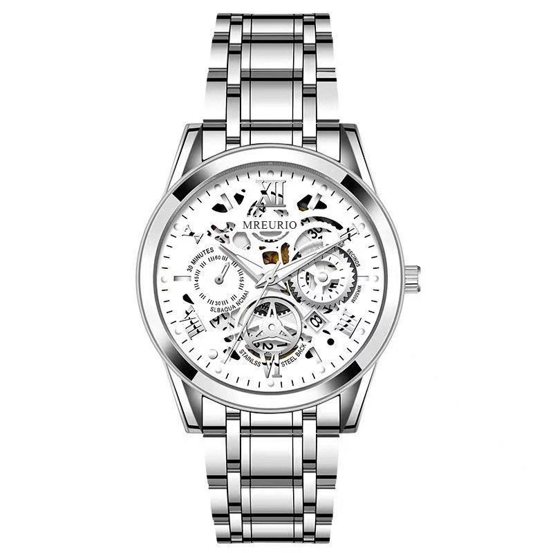 black surface silver case