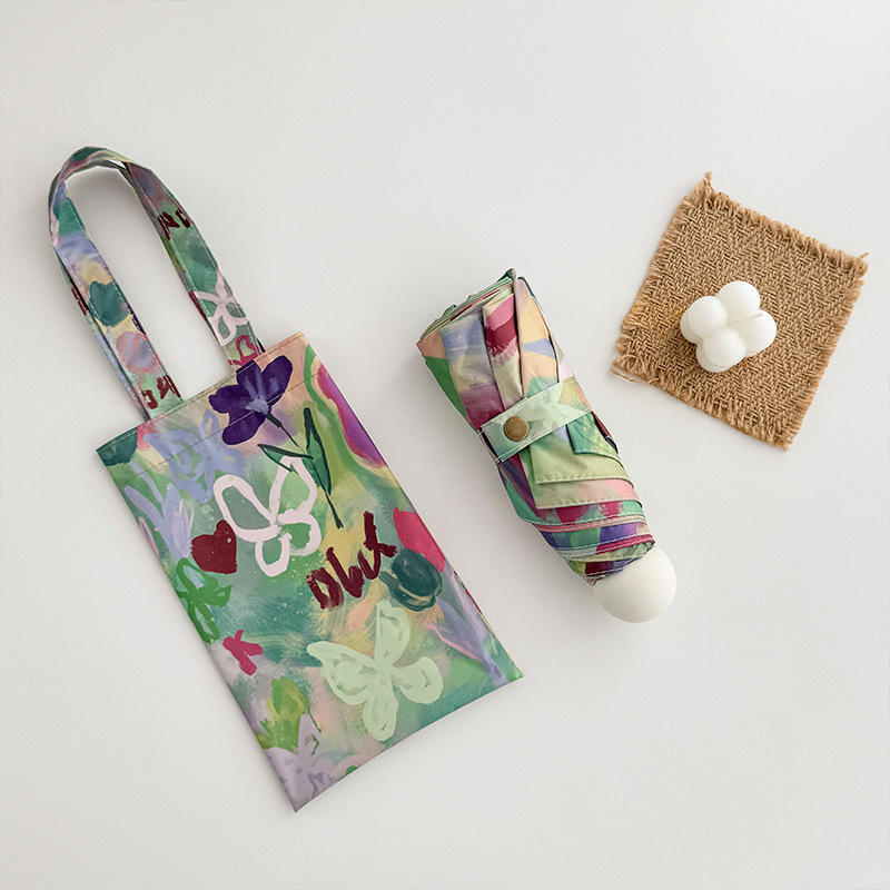 [new] oil color bow five-fold umbrella (open about 95cm can be used for sunny and rainy)