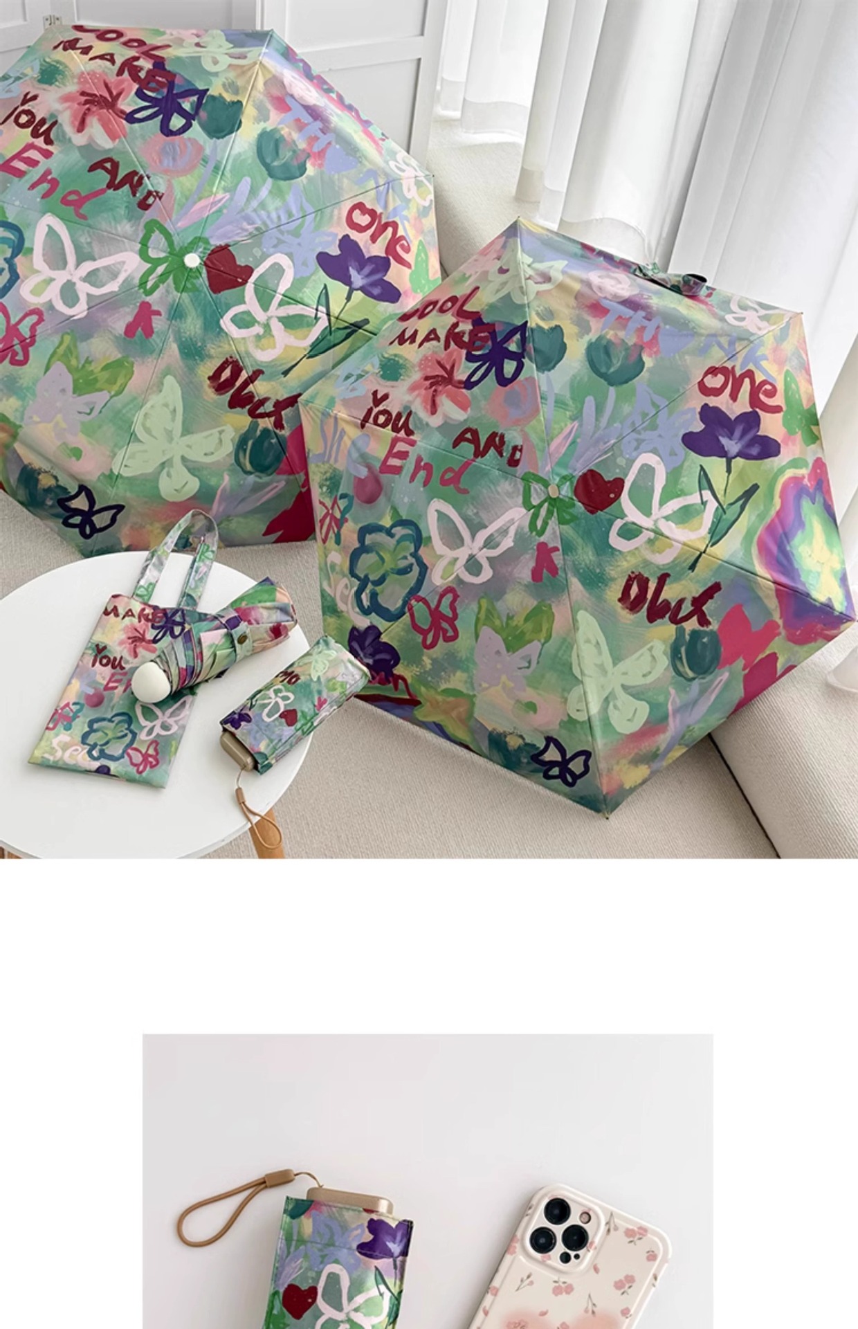 [new] butterfly mural flat six fold card umbrella (only umbrella cover without handbag)