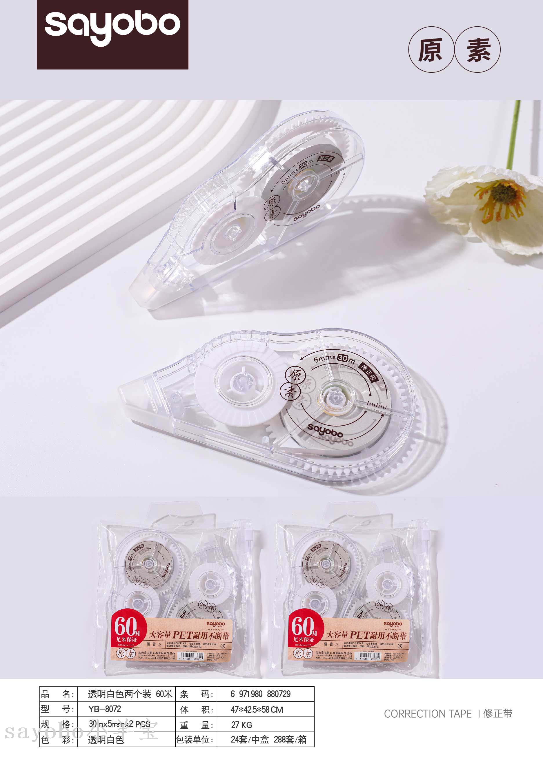 2 card-mounted correction tape 60 m durable non-break primary and secondary school students can use correction tape