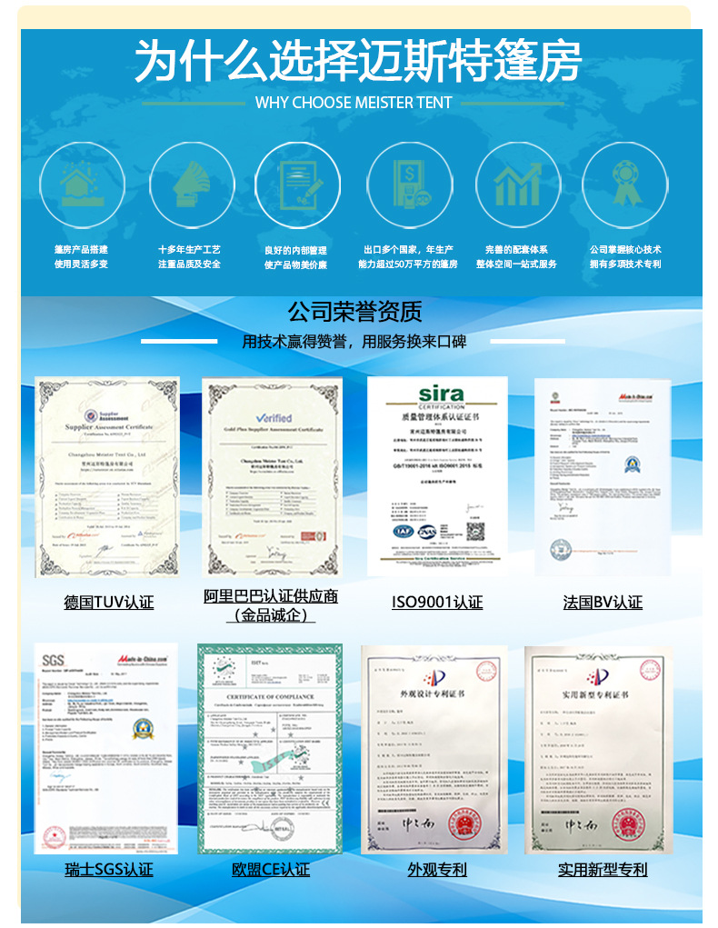 2. Fast setup: A 2000 square meter tent can theoretically be set up in just 12 hours.