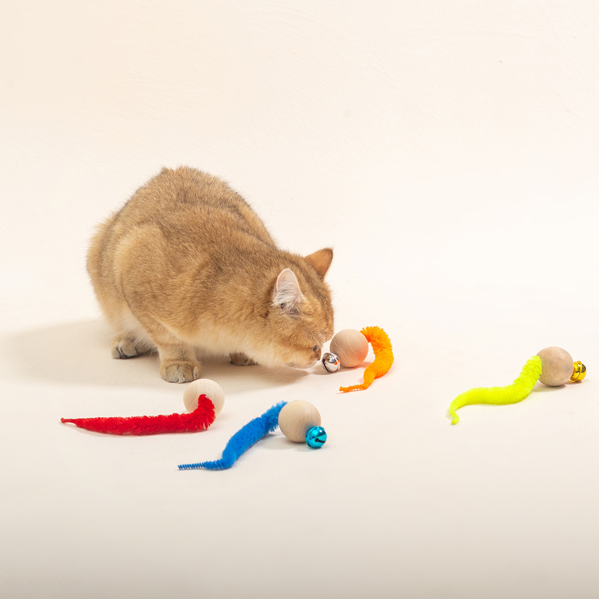 teaser toy wooden bead caterpillar bell teasing stick replacement head pet supplies wholesale toys cross-border preferred 中文版