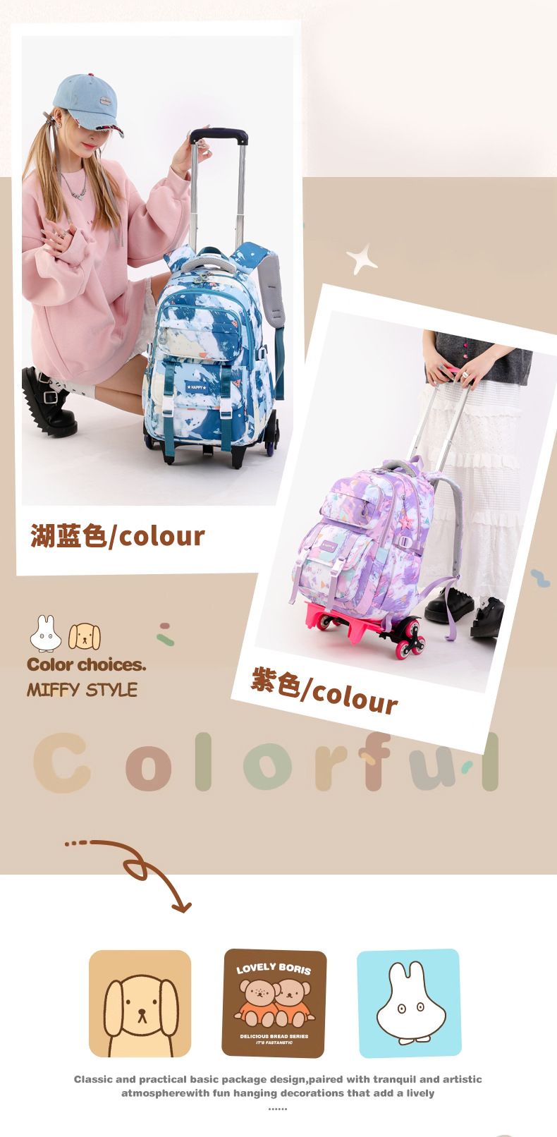 lake blue six-wheel three-piece set