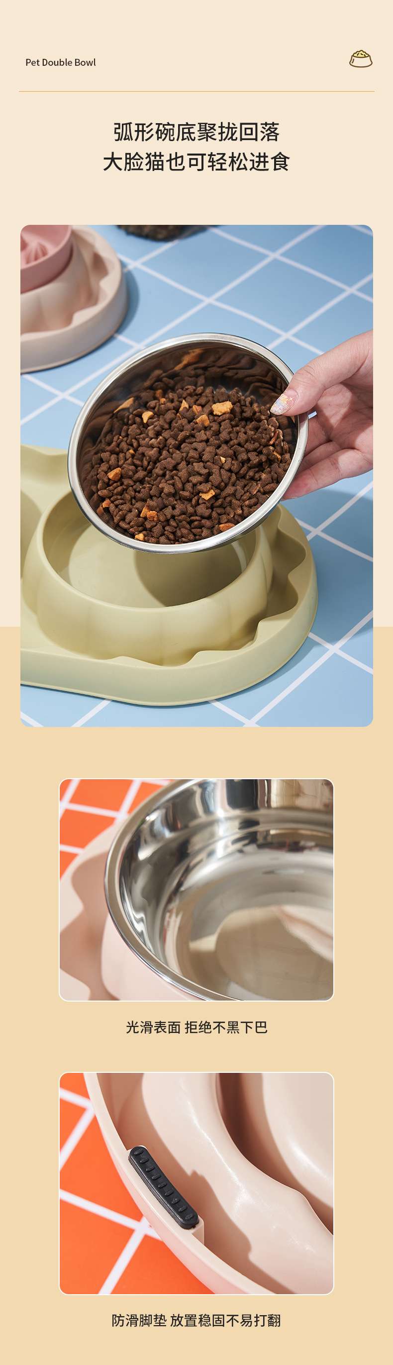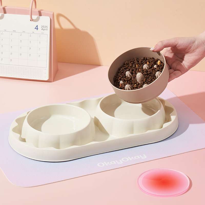 pet stainless steel double bowl anti-choke slow feeding bowl anti-tumble bowl dog bowl pet bowl exclusive for cross-border 中文版