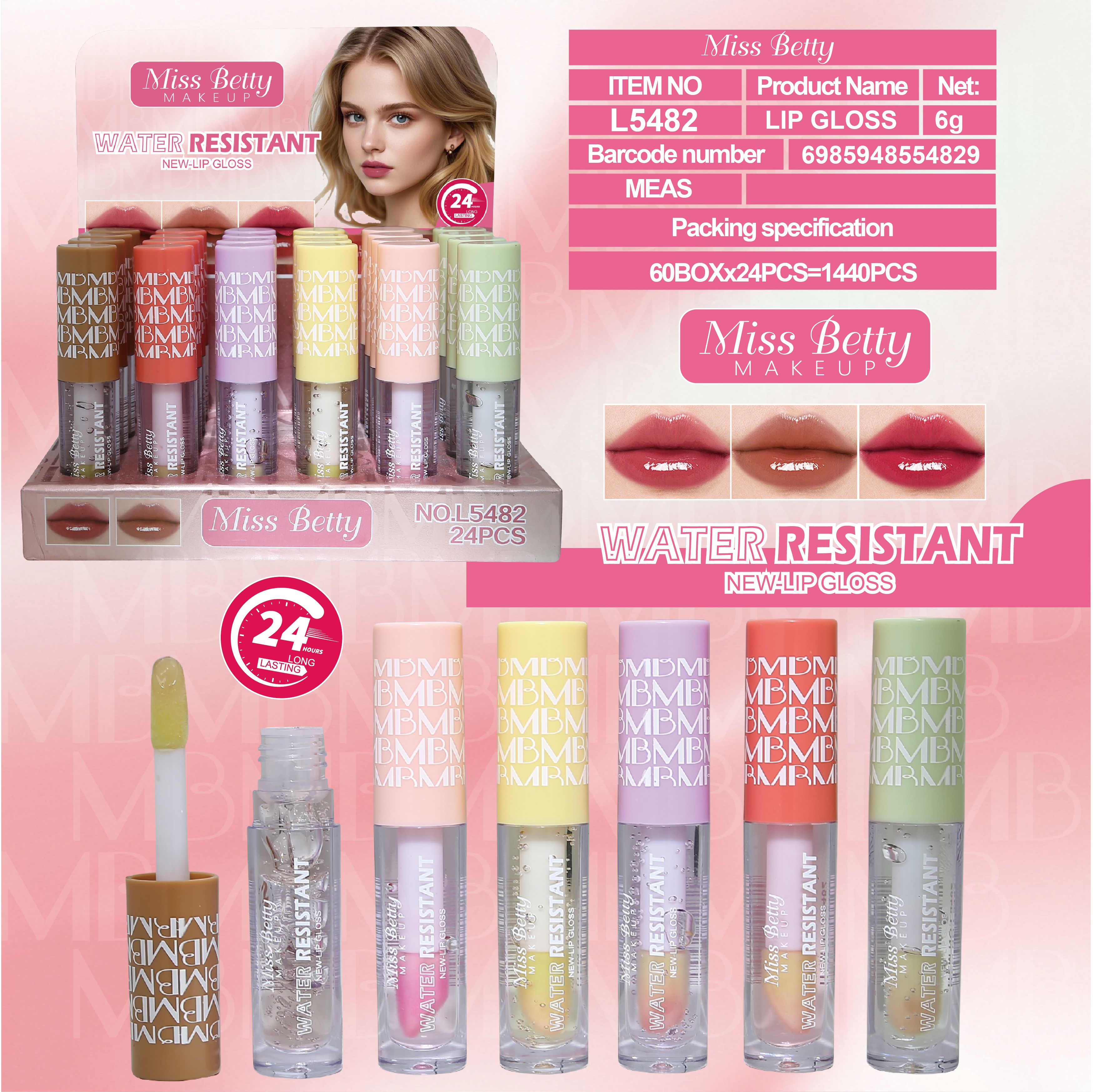 Miss Betty's New Cross-Border Trade Collection of 6 Colors of Round Tubes with Macaron Colors and Moisturizing Changeable Lip Oil - Exclusively for Export