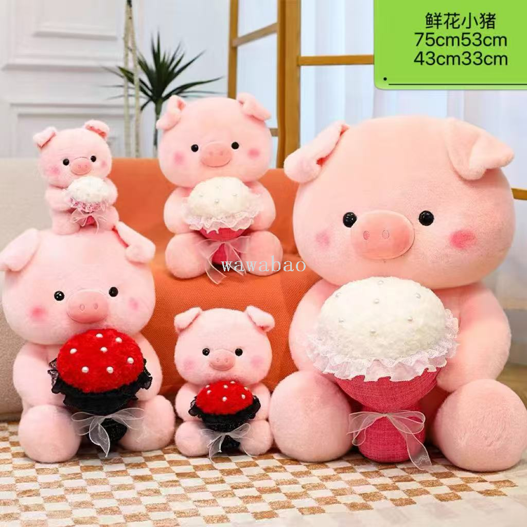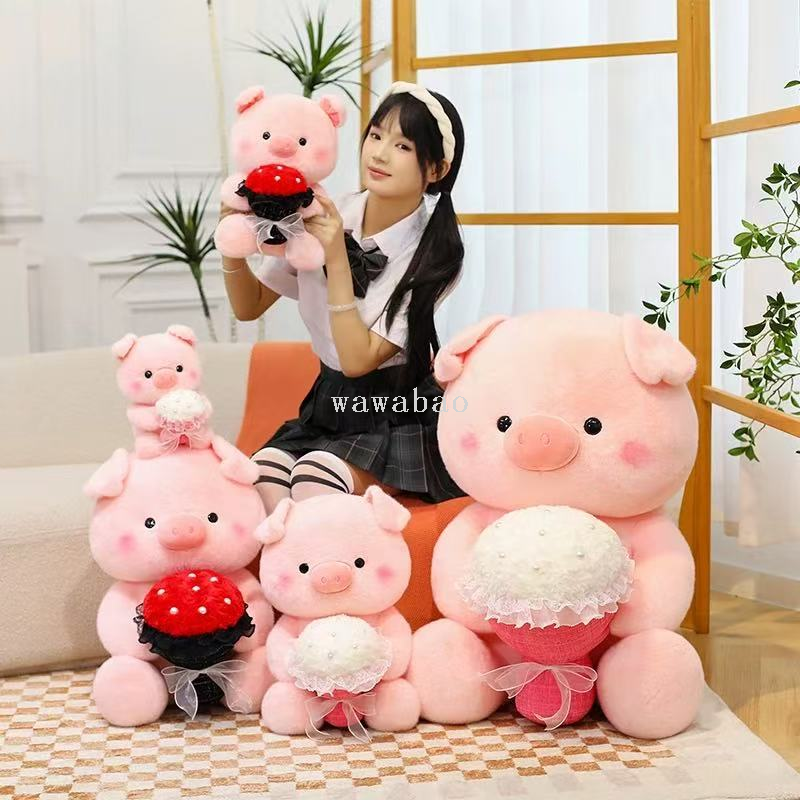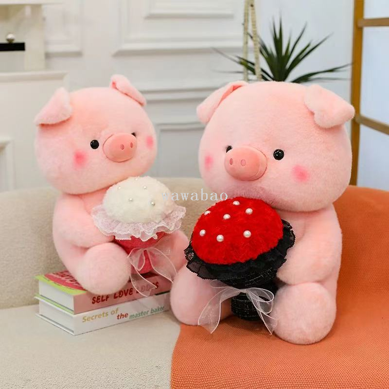 cute bouquet pig plush toy rose bouquet pig plush doll pig 中文版