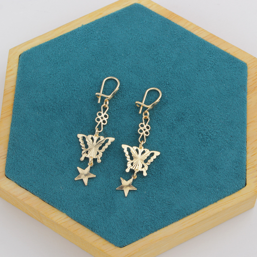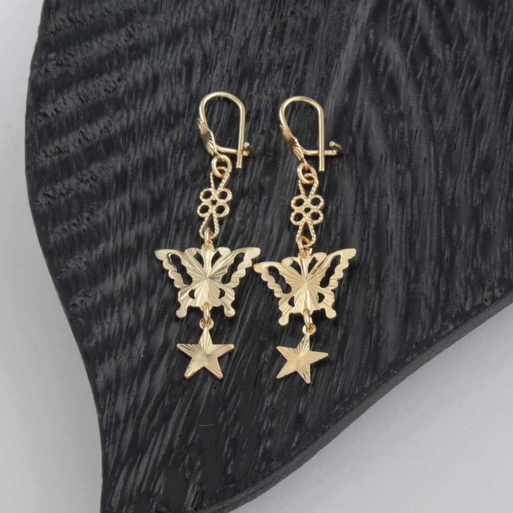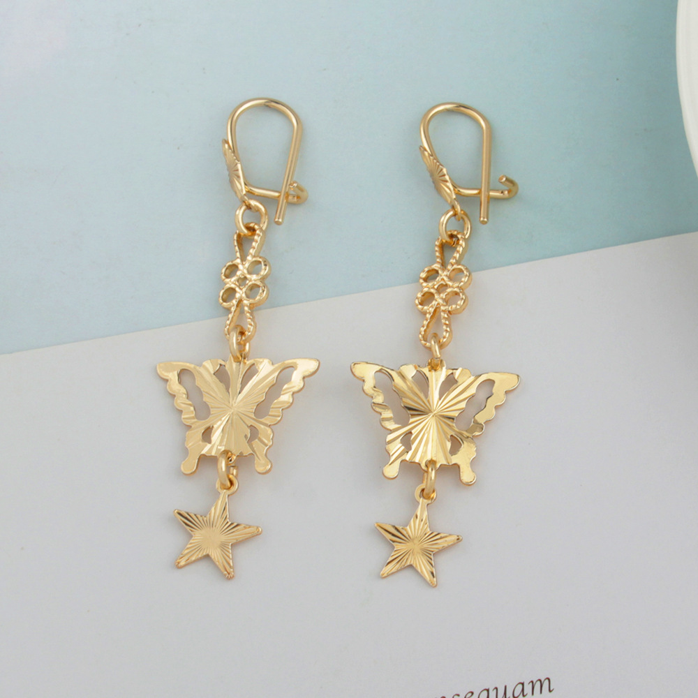cross-border european and american new gold-plated light rose gold retro simple niche butterfly five-pointed star hollow stud earrings earrings 中文版