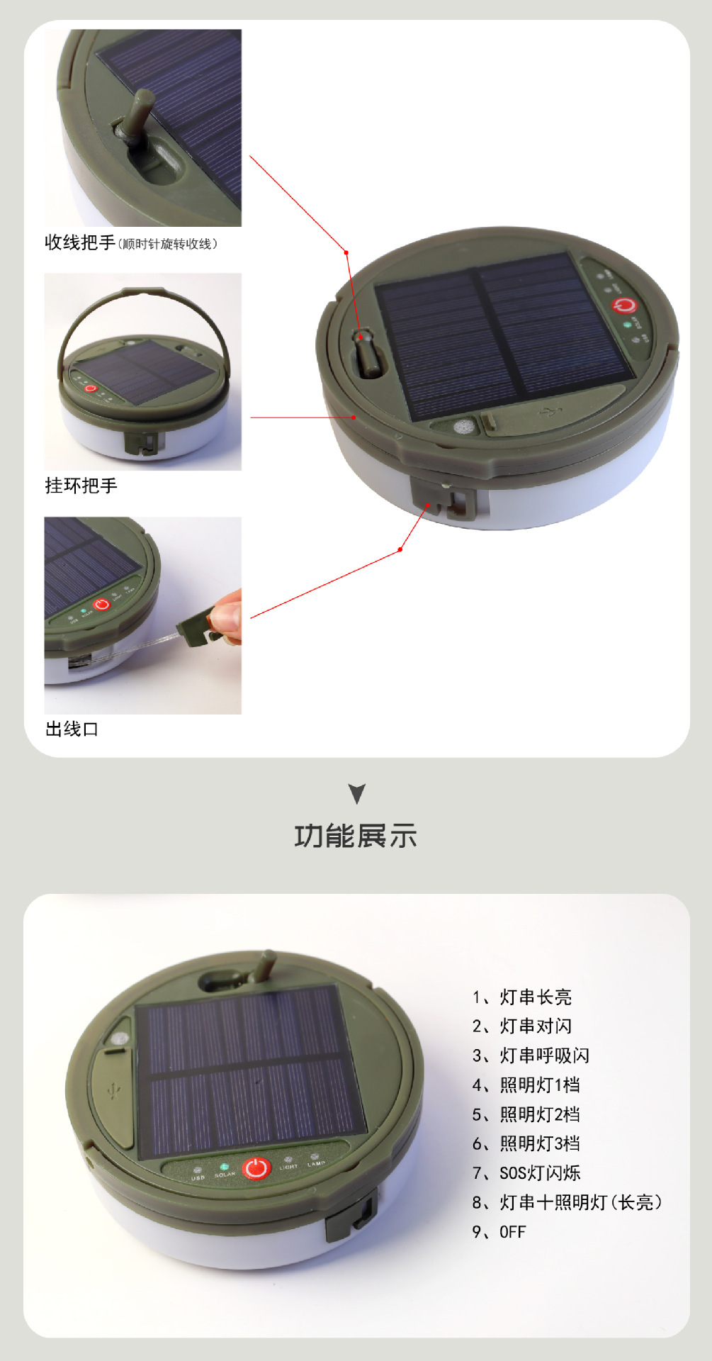 new solar outdoor camping lighting lamp tape storage camping lighting chain tent canopy emergency ambience light 中文版