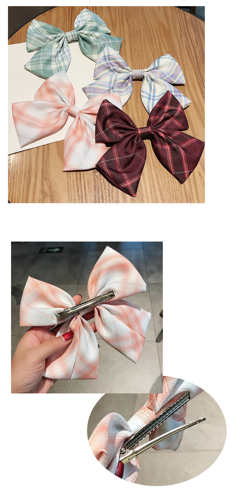 052 ribbon hairpin-brown plaid