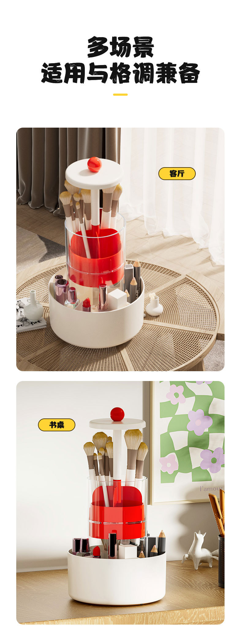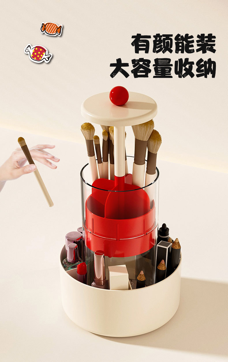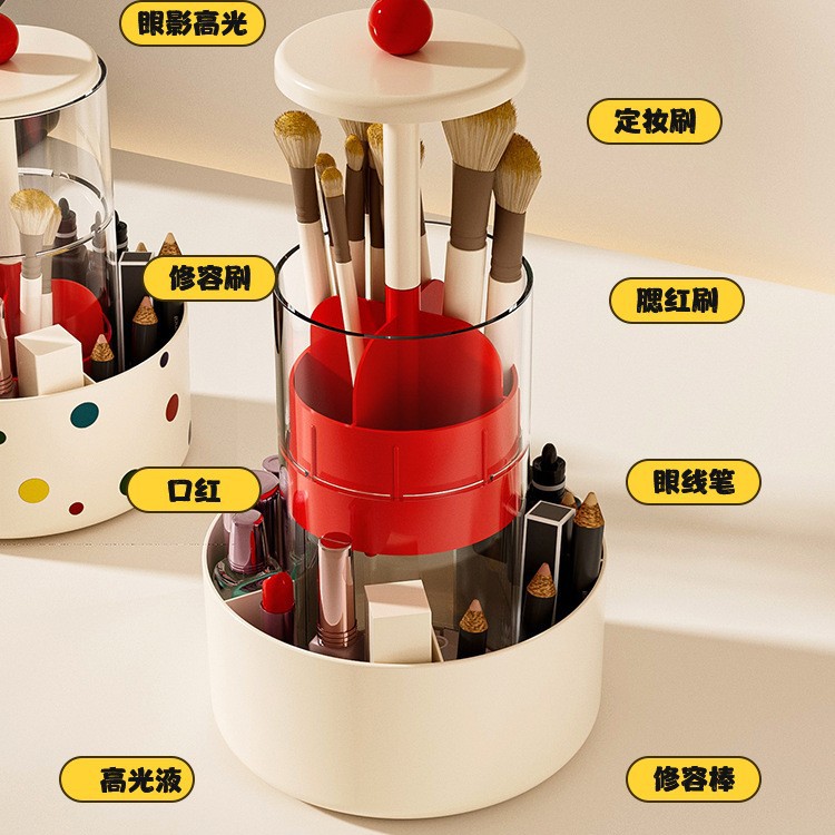 [cream red] lifting storage container + capacity upgrade + bottom rotation