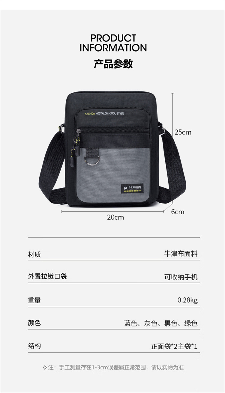 men's messenger bag 2025 new men's bag fashion casual multi-layer waterproof oxford cloth wallet trendy one-shoulder bag