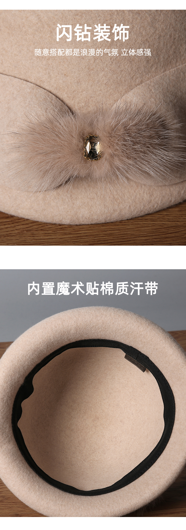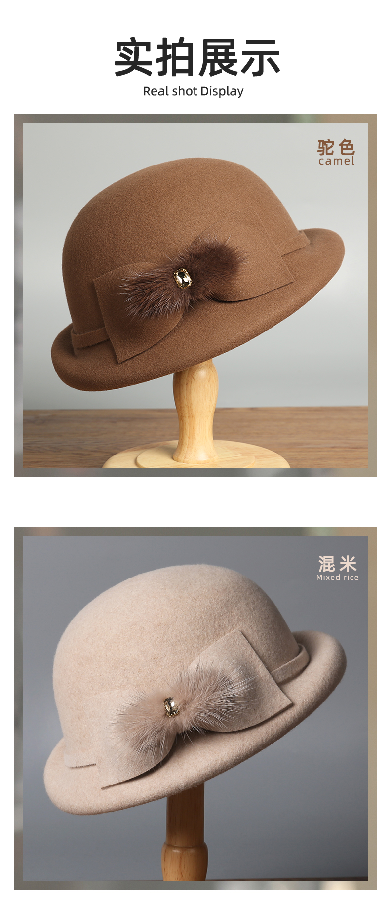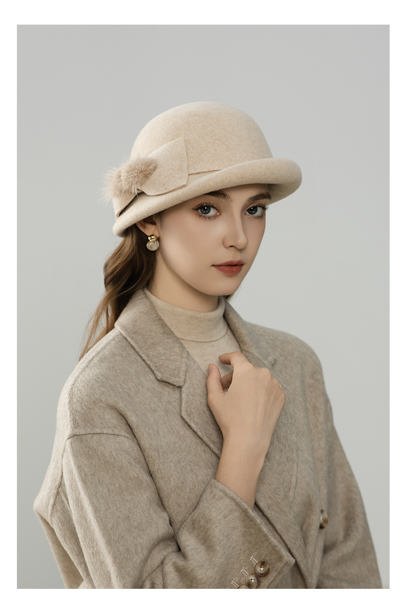 autumn and winter new hat ladies wool basin hat versatile wool felt hats fashion simple mink hair bow 中文版