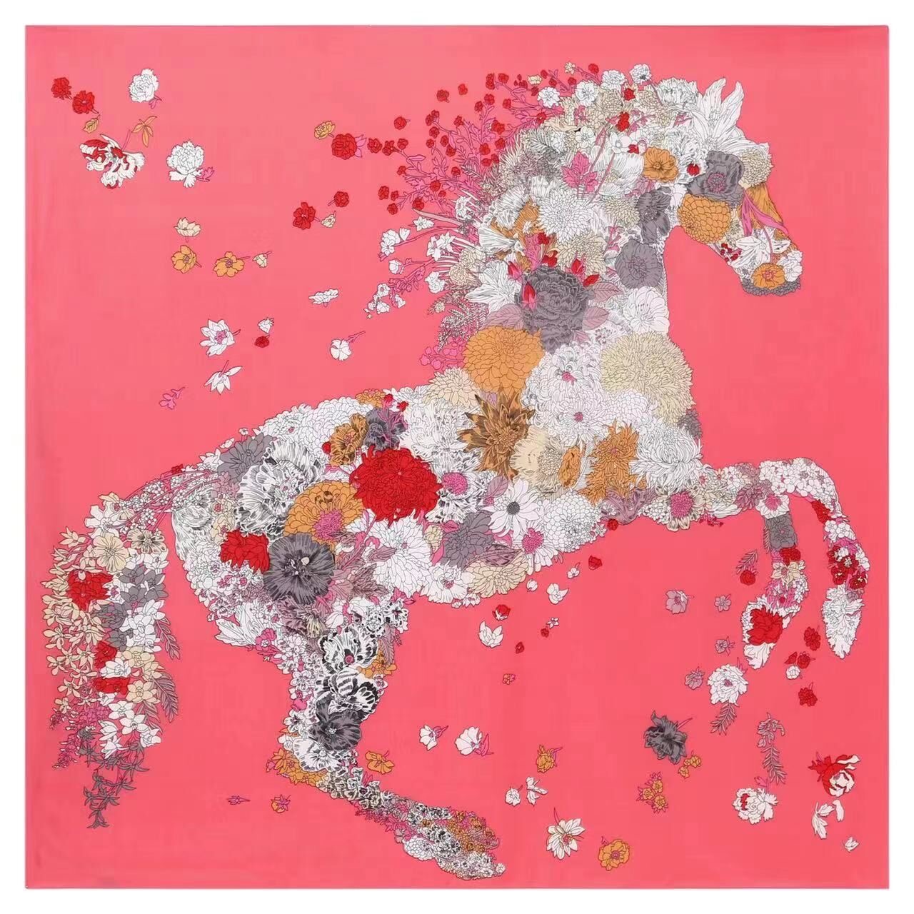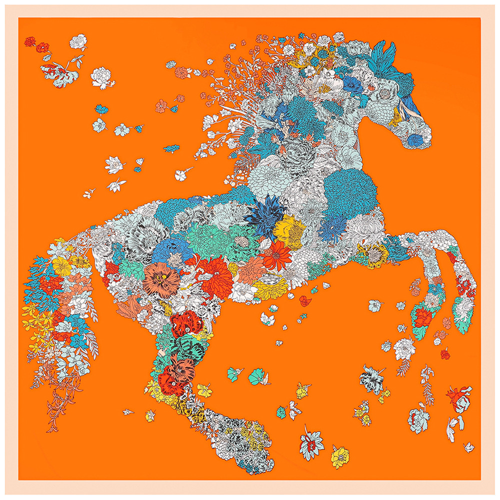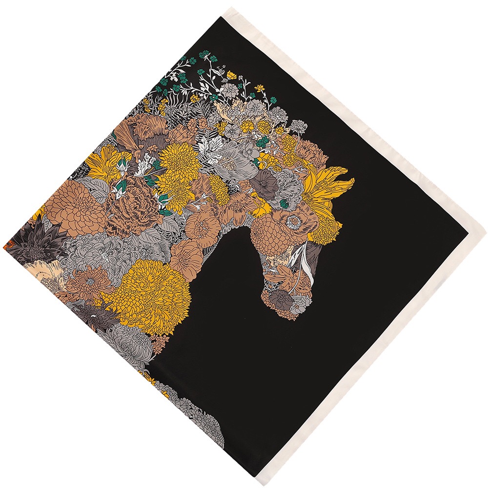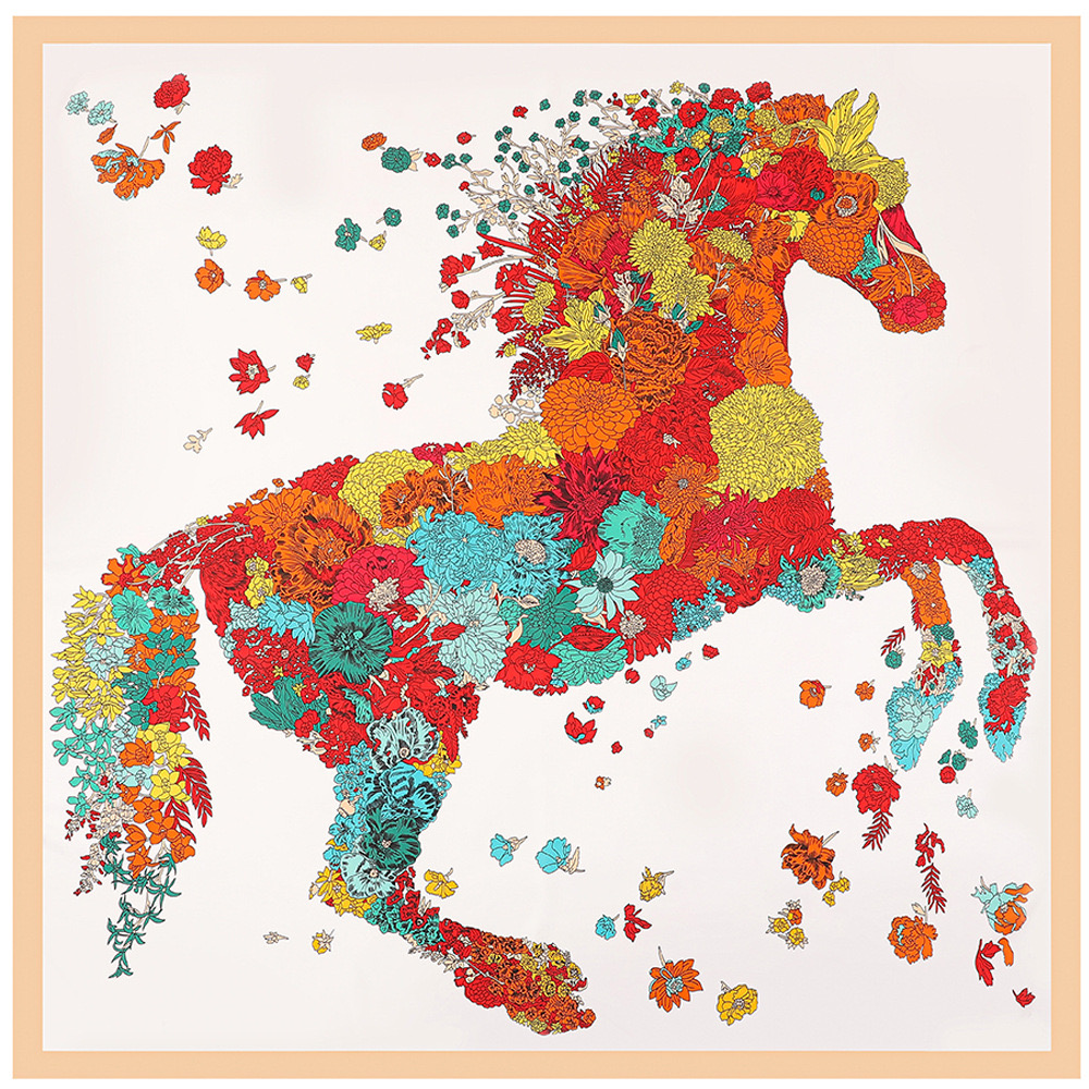 Women's Fashion Rose Flower Horse Print Polyester Square Scarf |