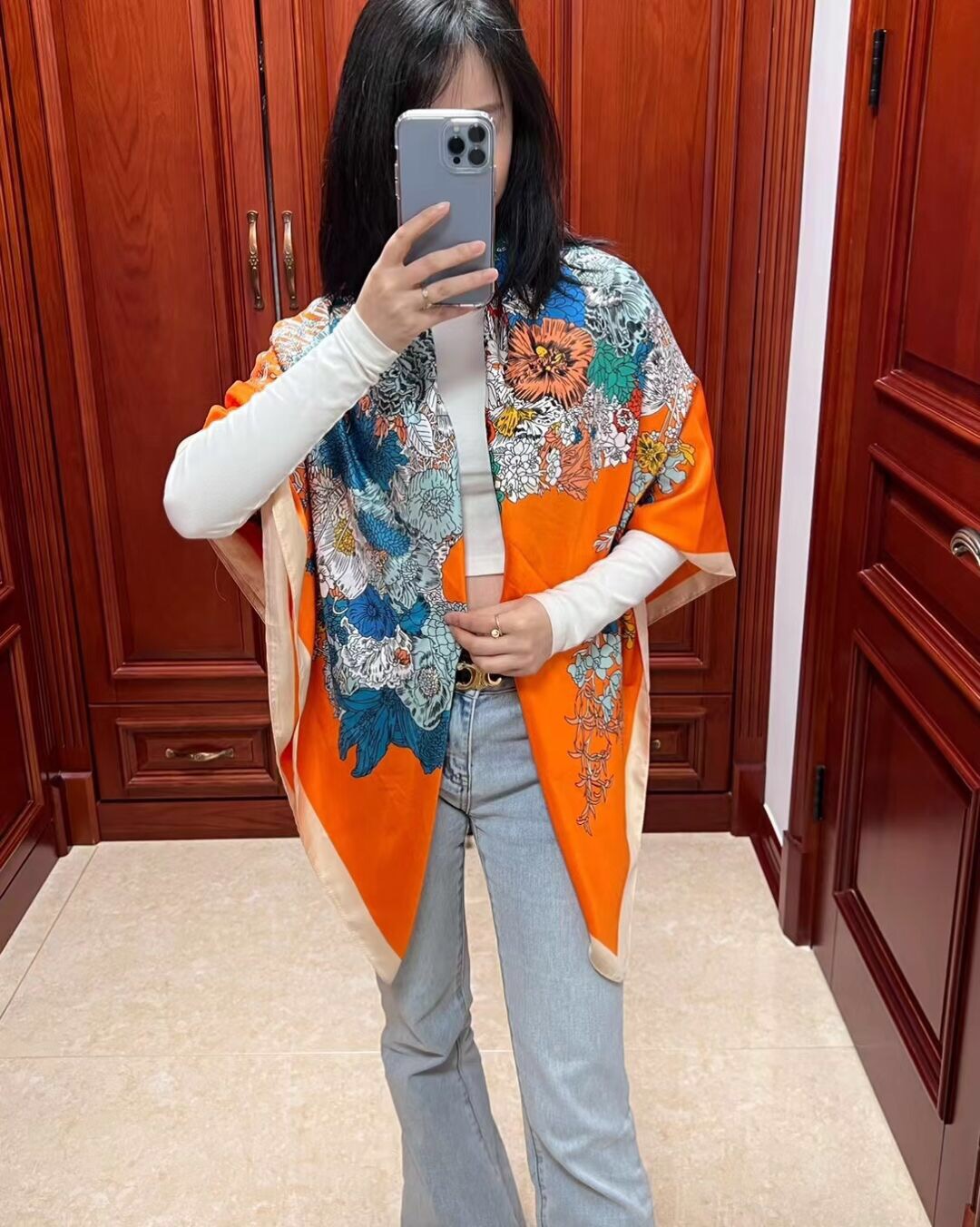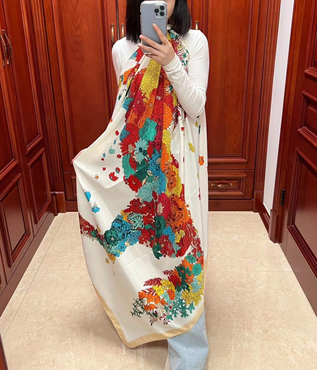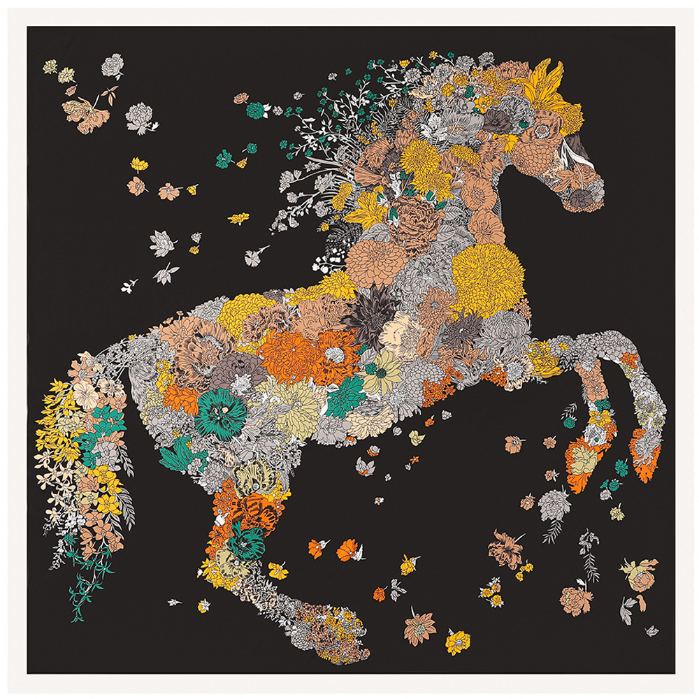 Women's Fashion Rose Flower Horse Print Polyester Square Scarf |