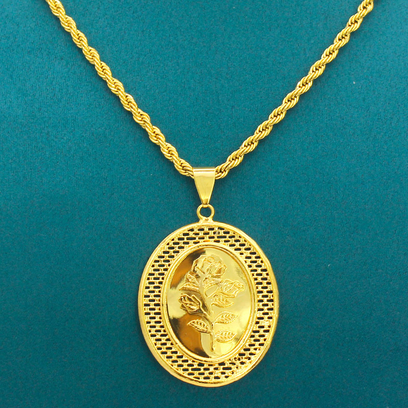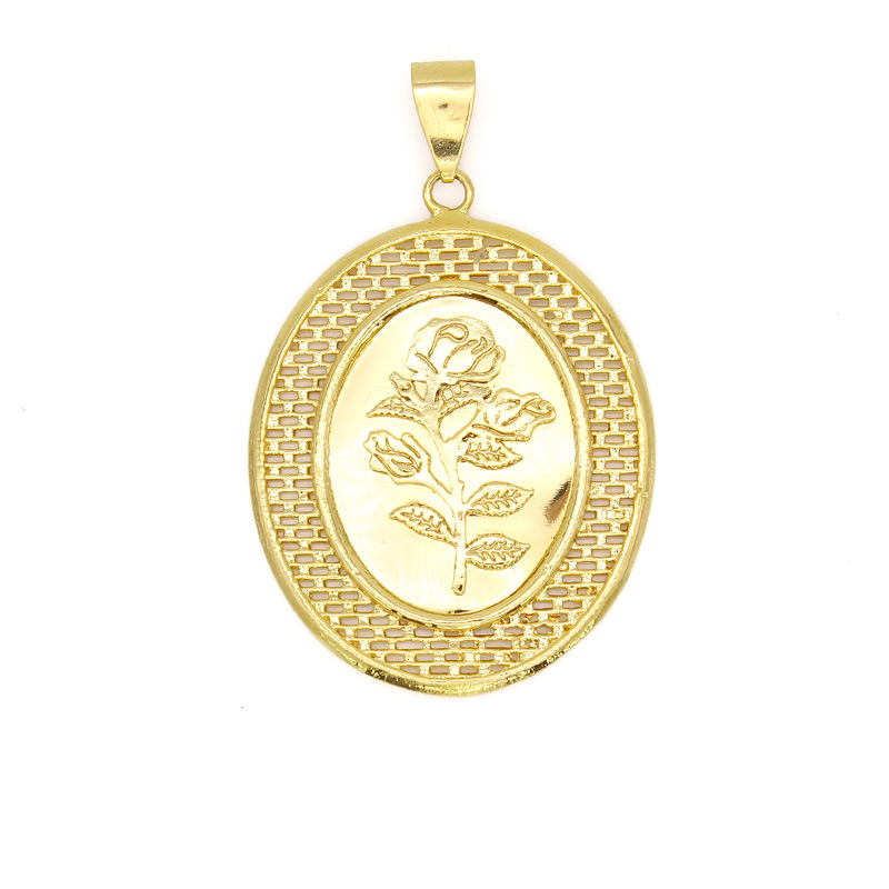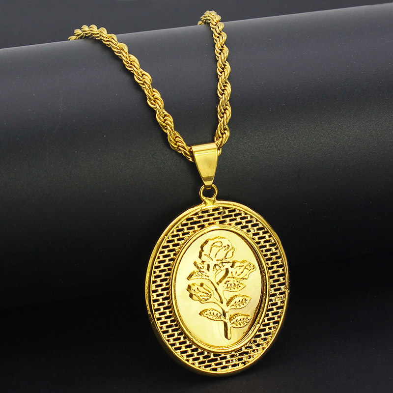 fashion retro trend ethnic rose antique coin gold plated hollow pendant necklace cross-border supply wholesale 中文版