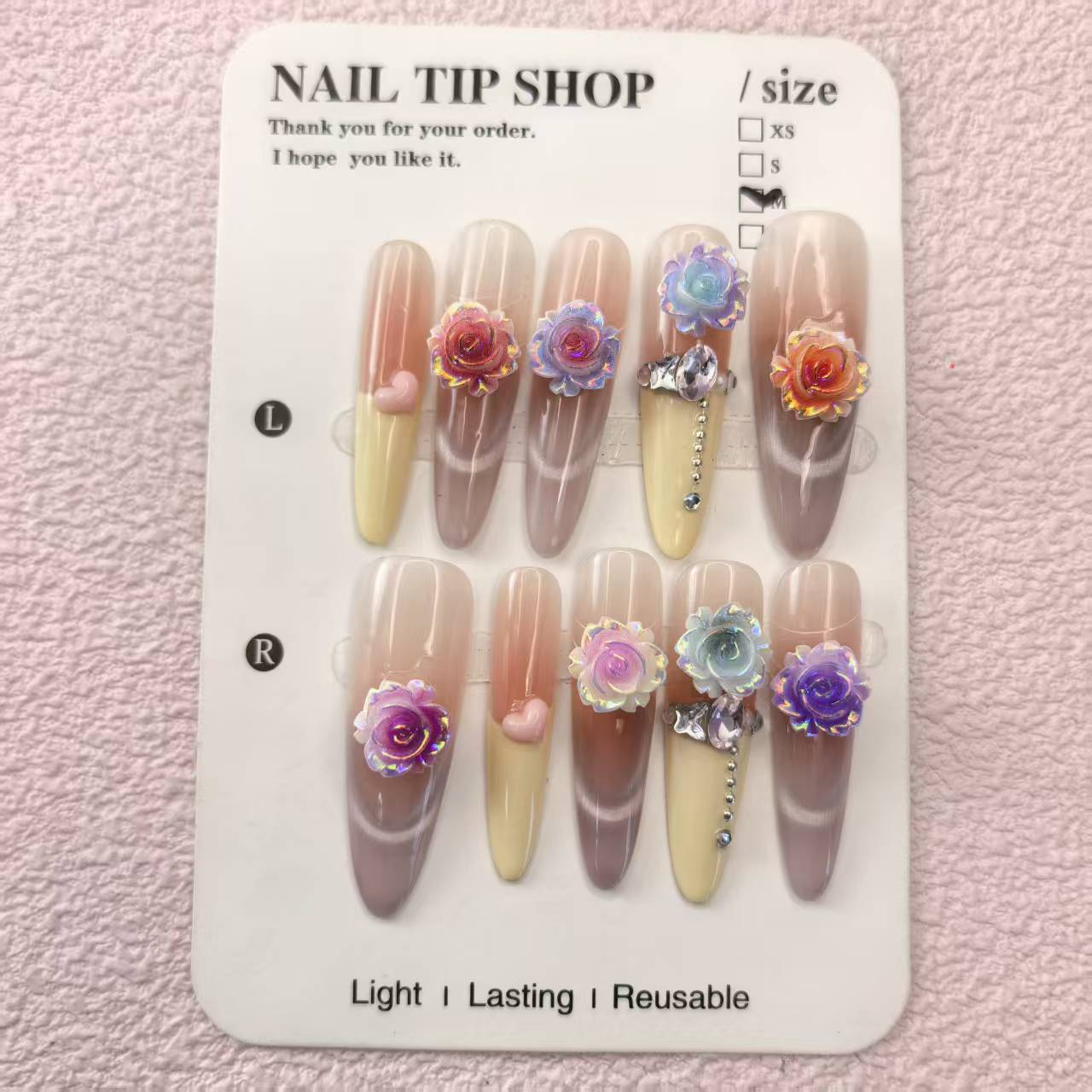 Rose as a classic design element, due to its romantic and elegant symbolic meaning, is widely used in resin nail jewelry and accessories in various industries. The following are its application scenarios and design features in different fields: