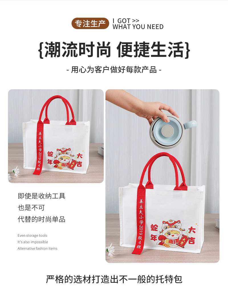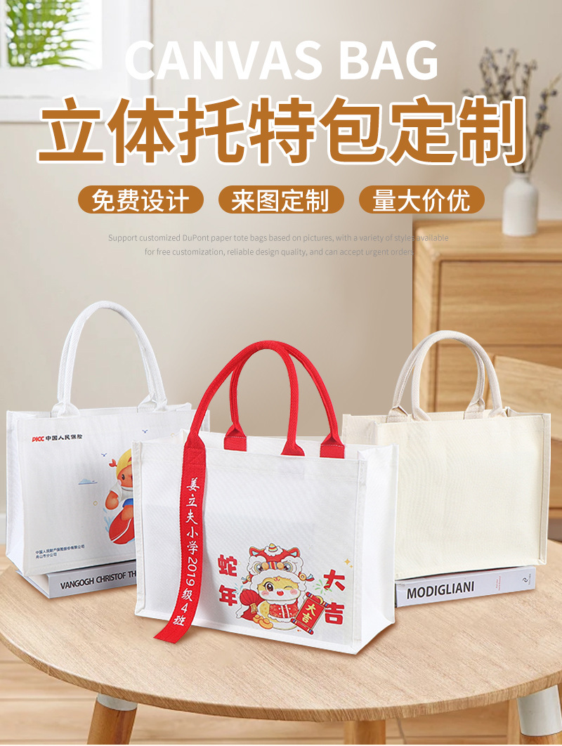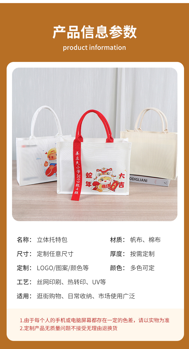 three-dimensional tote bag custom printed logo portable ribbon gift bag fashion single-layer film three-dimensional canvas bag custom 中文版