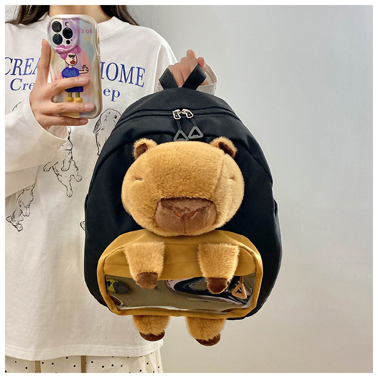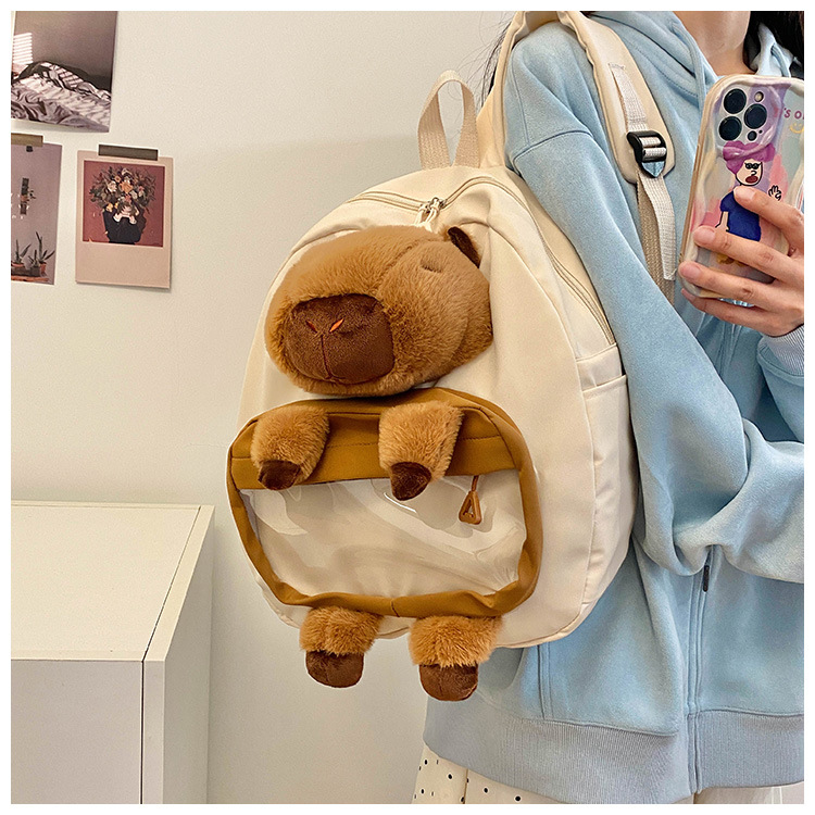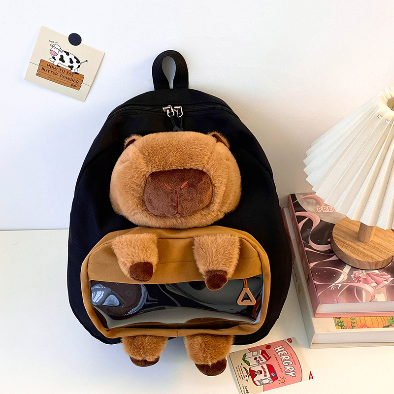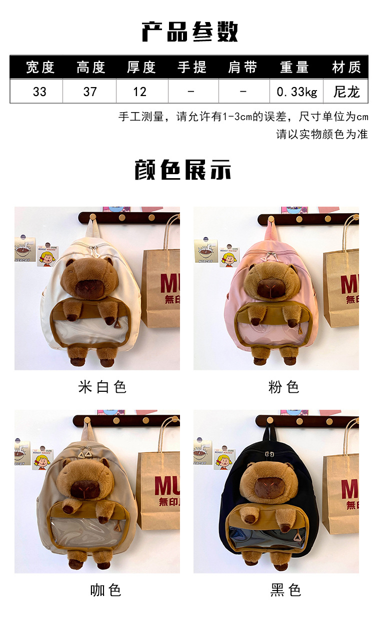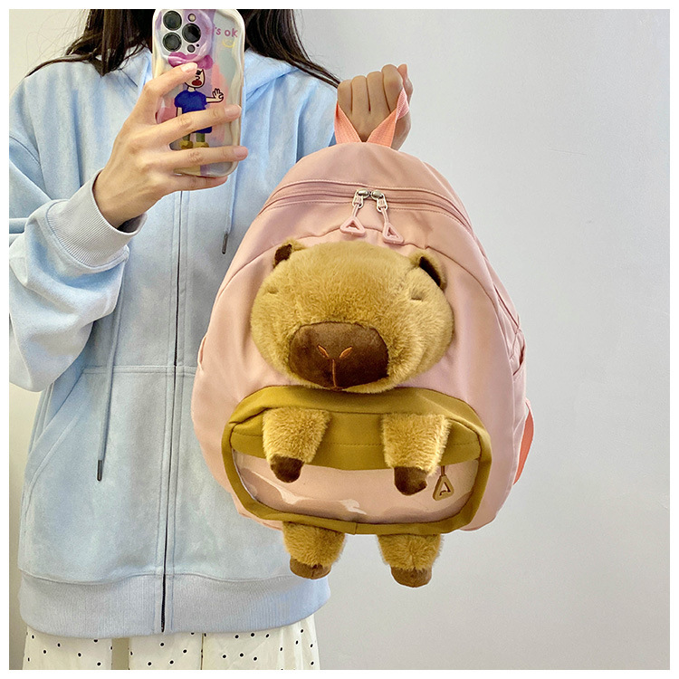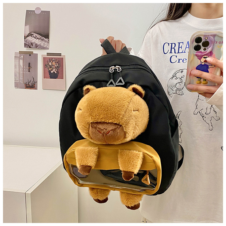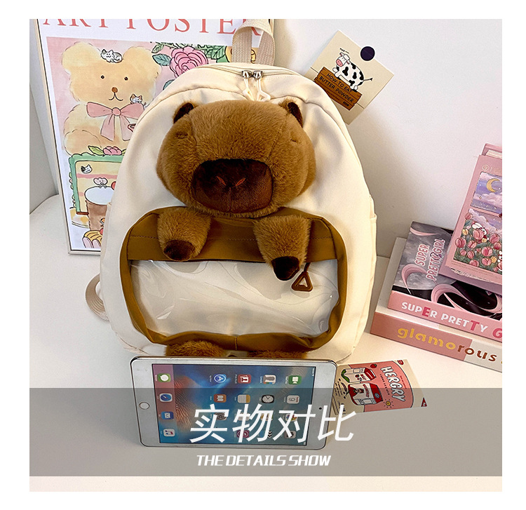cartoon children's capibara plush backpack girl's large capacity cute schoolbag capybara all-matching casual backpack 中文版