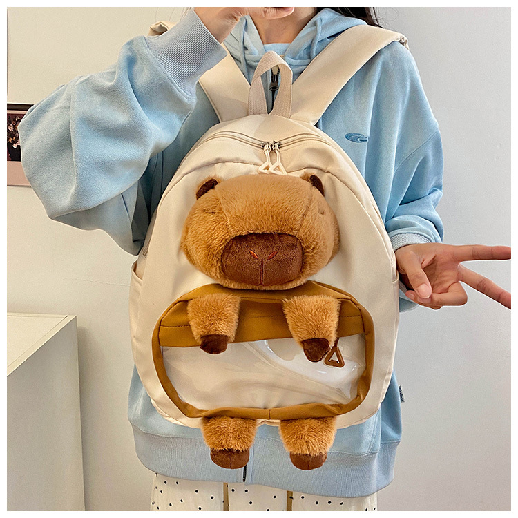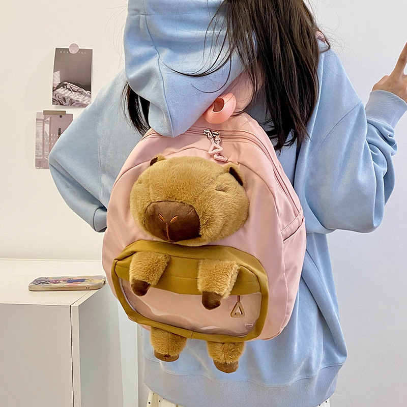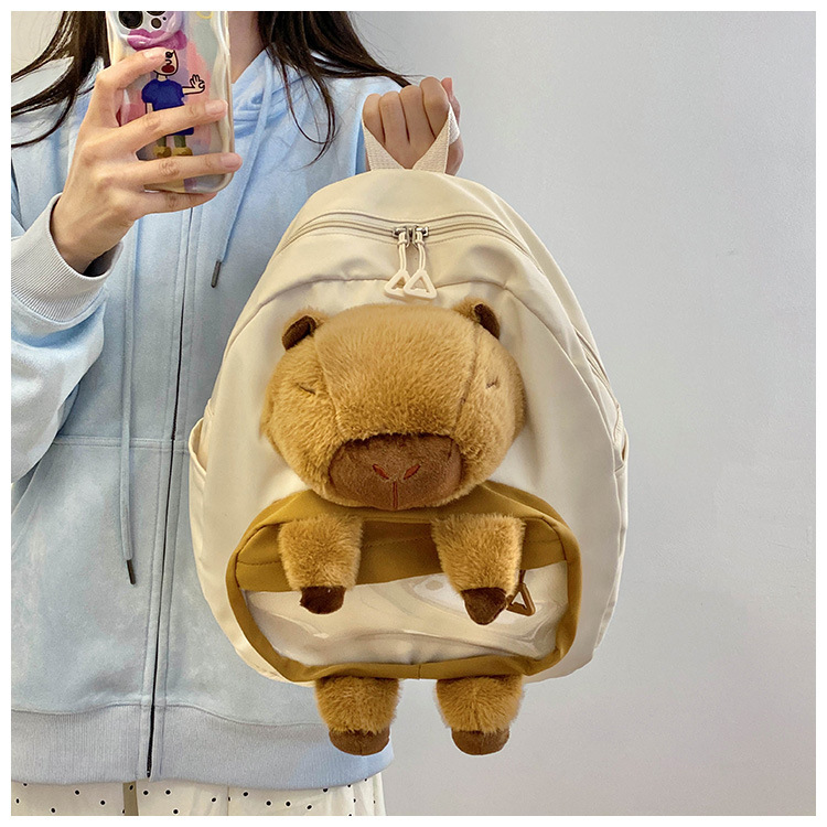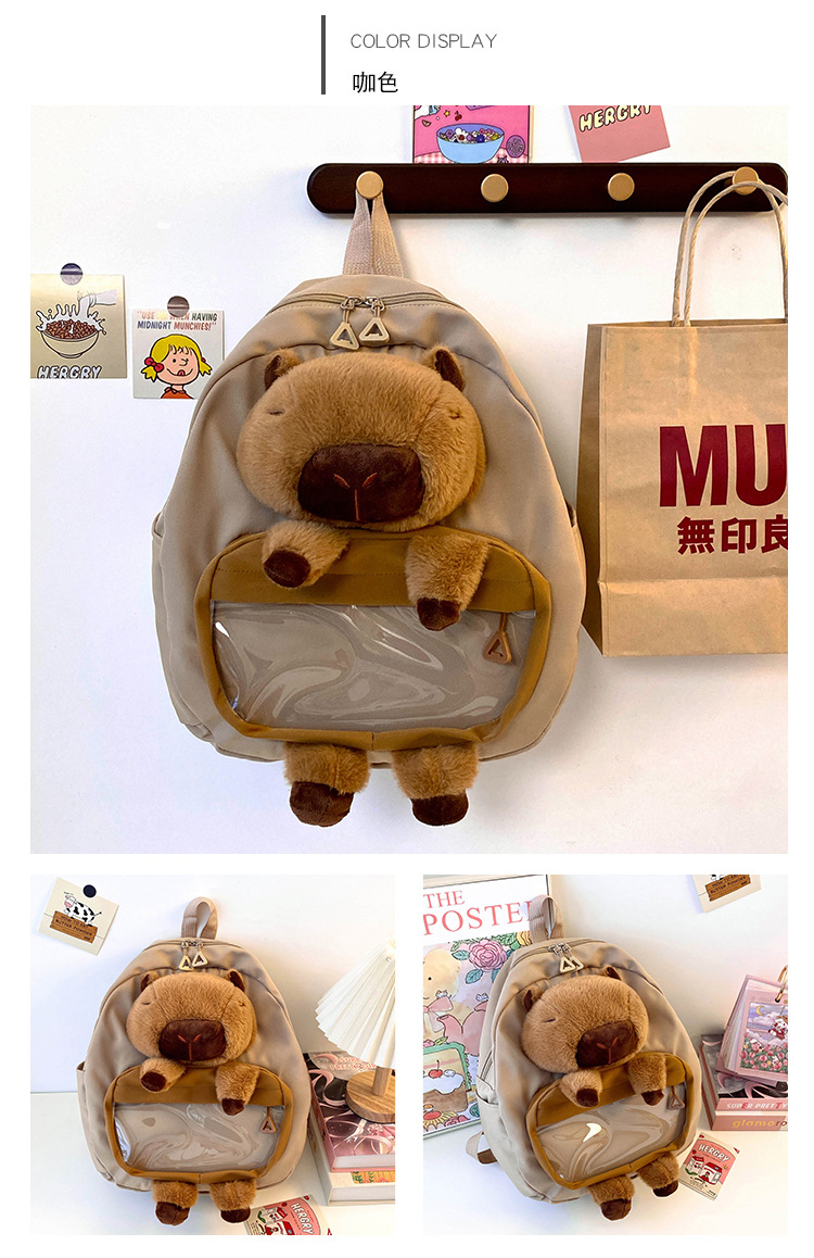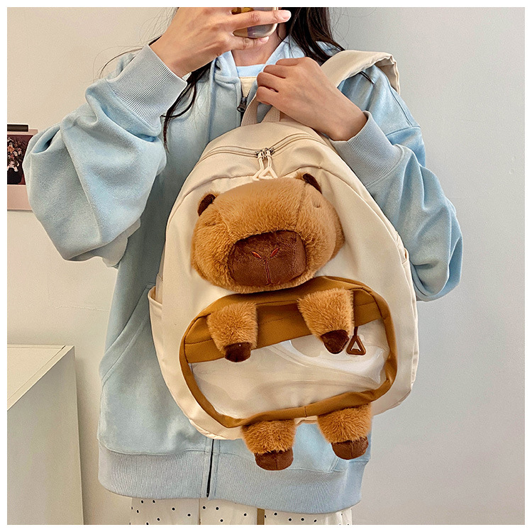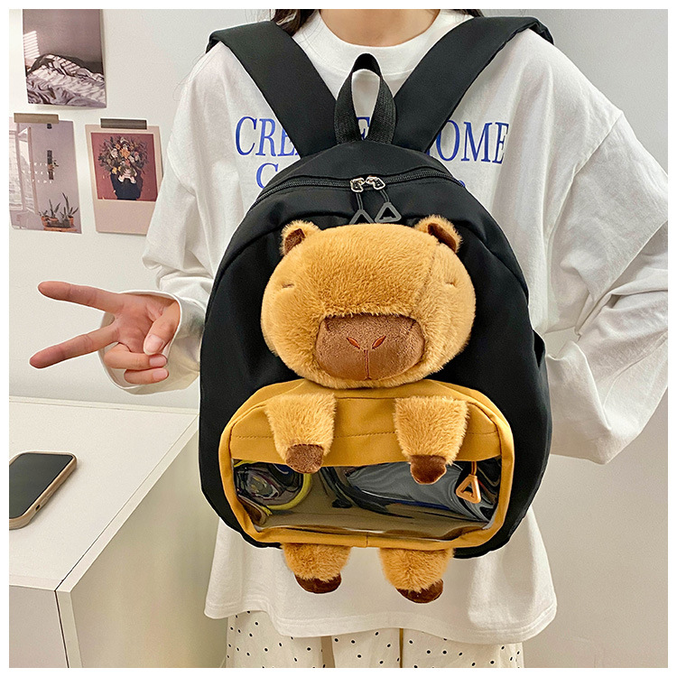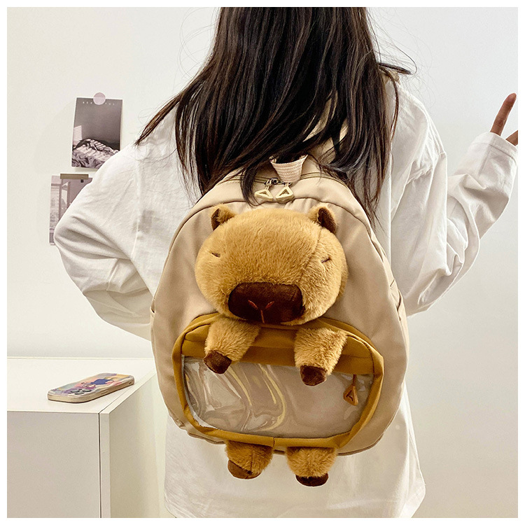 cartoon children's capibara plush backpack girl's large capacity cute schoolbag capybara all-matching casual backpack 中文版