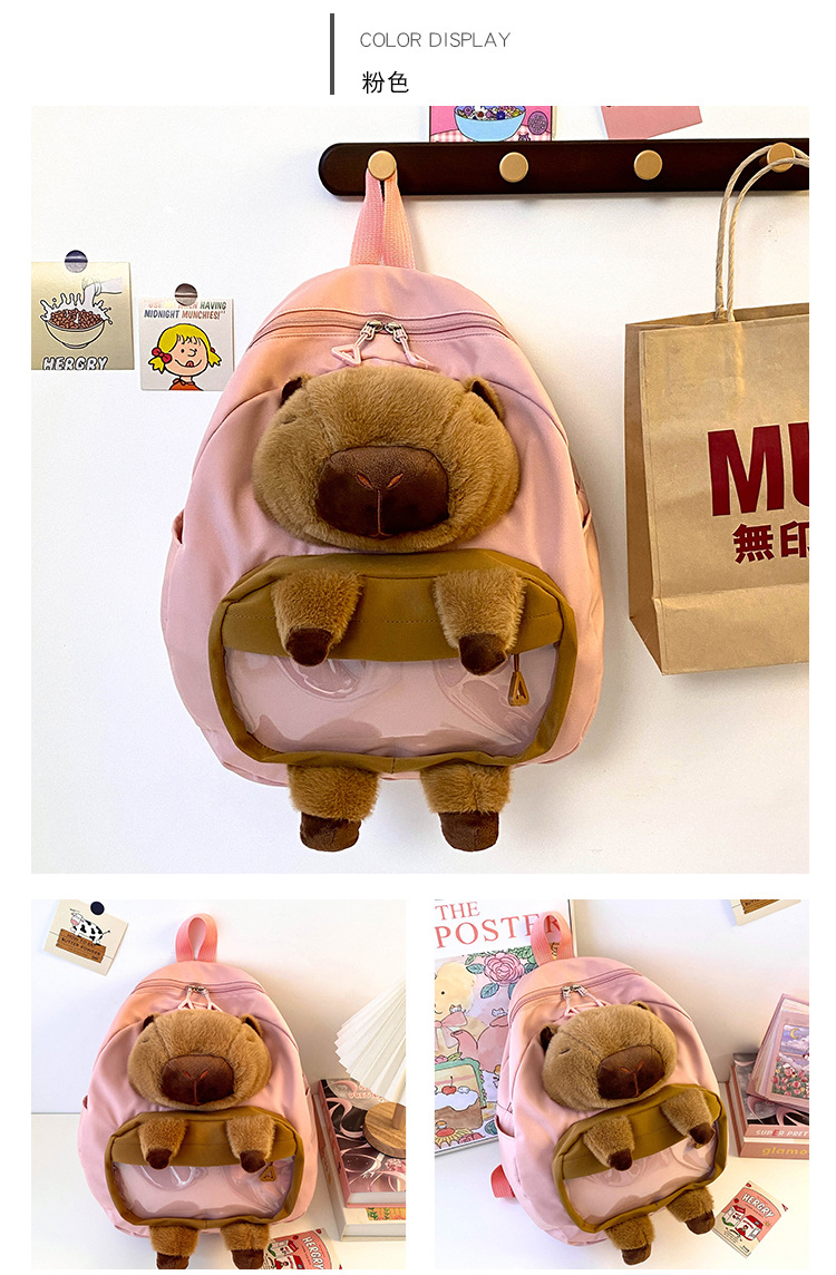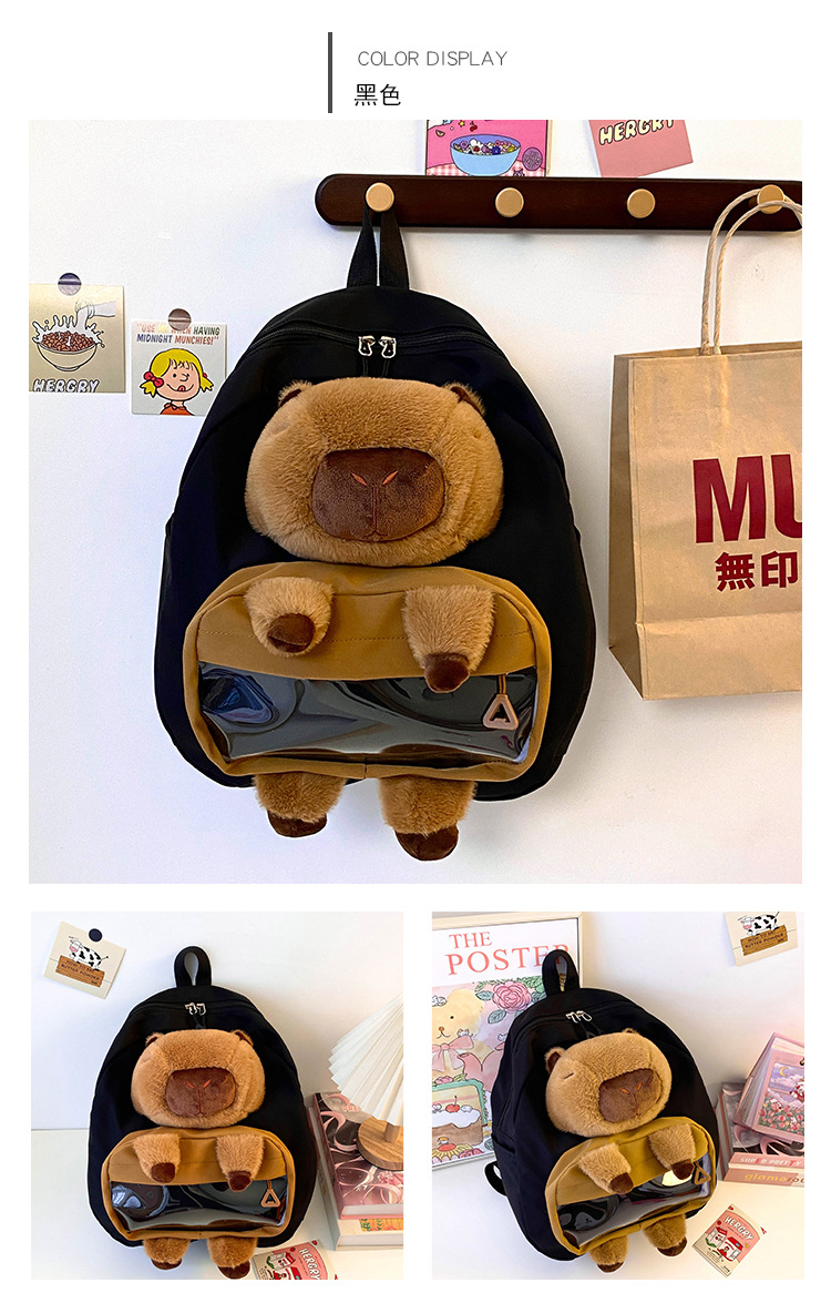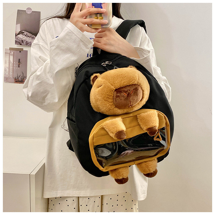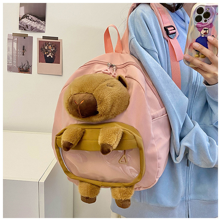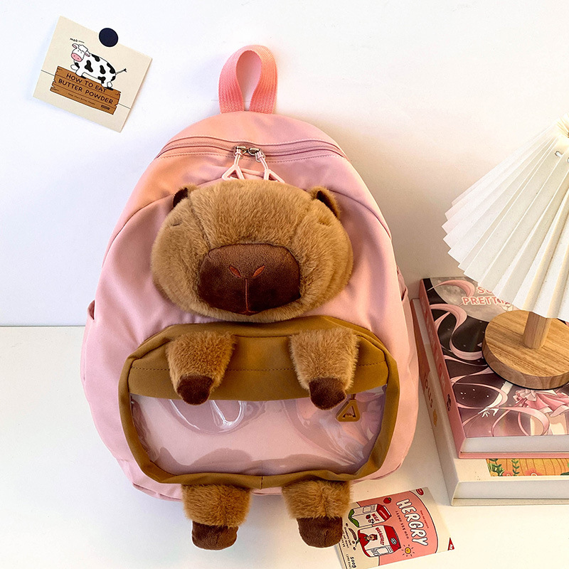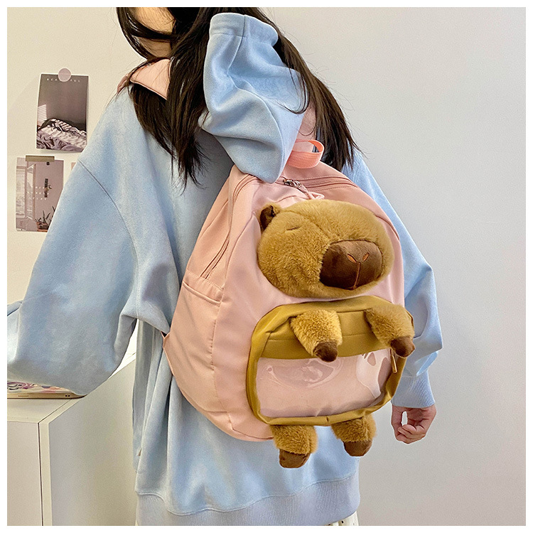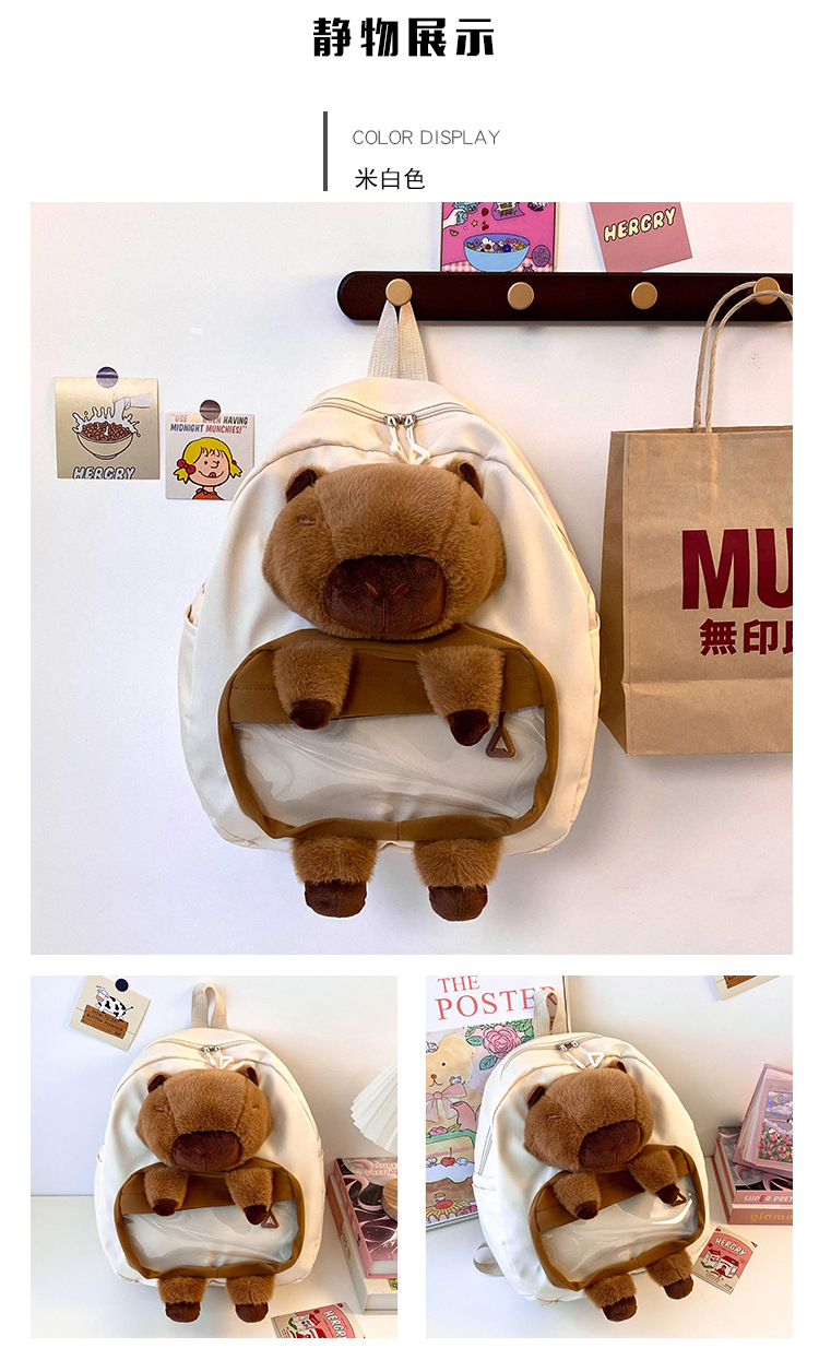 cartoon children's capibara plush backpack girl's large capacity cute schoolbag capybara all-matching casual backpack 中文版