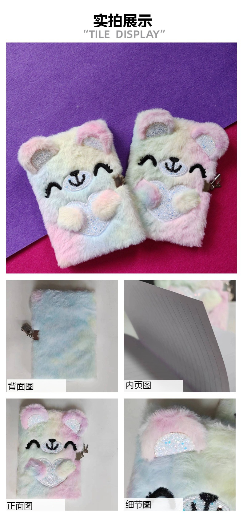 notebook book factory hot creative new custom plush tie-dyed bear diary book plush notebook 中文版