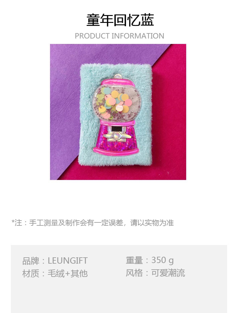 notebook book a5 blue plush notebook seven-color sequins beads gumball machine environmentally friendly pu embroidery notebook 中文版