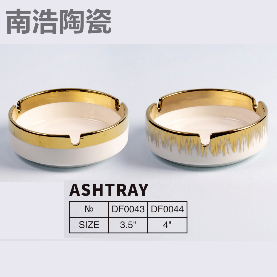simple white round ashtray homestay hotel hotel ashtray restaurant restaurant creative golden trim ceramic ashtrays