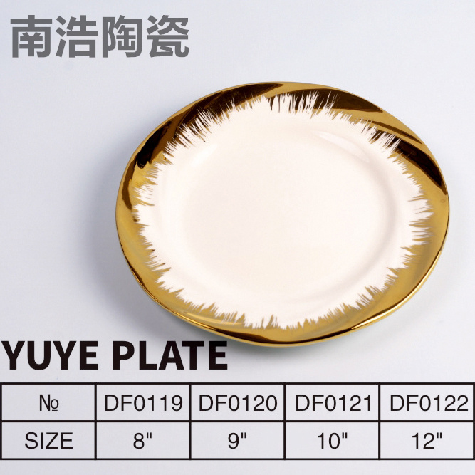 nordic simple plate ceramic creative and slightly luxury gilt edging porcelain tableware western food plate steak plate noodle plate home