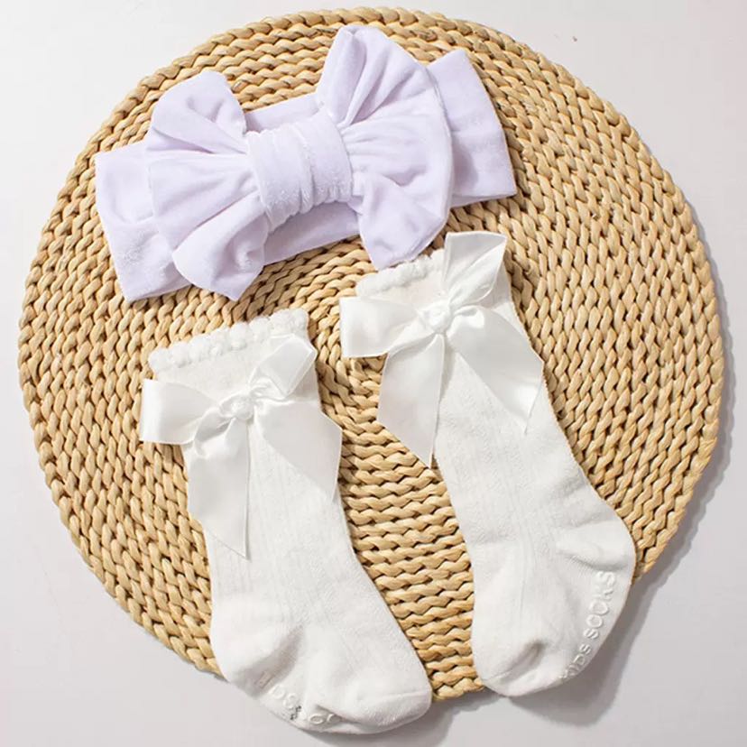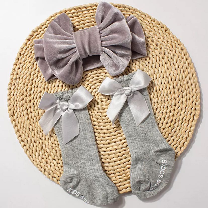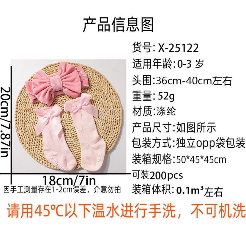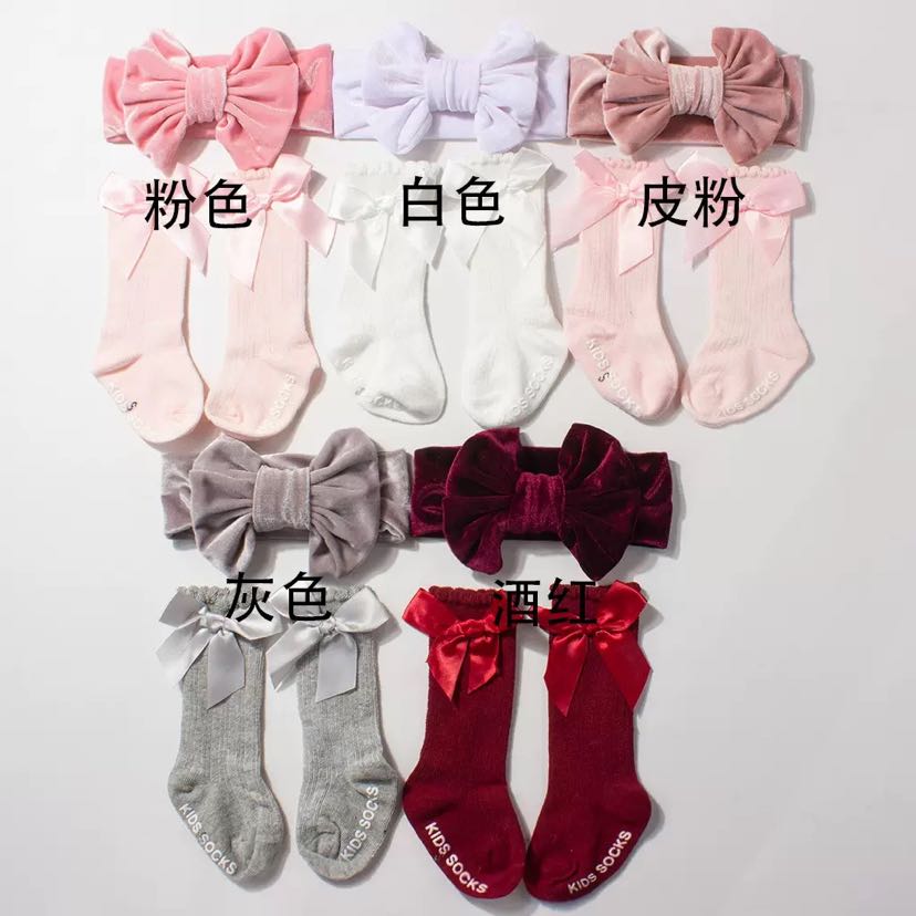 european and american new gold velvet baby hair band socks combination autumn and winter warm bow children hair band socks suit 中文版