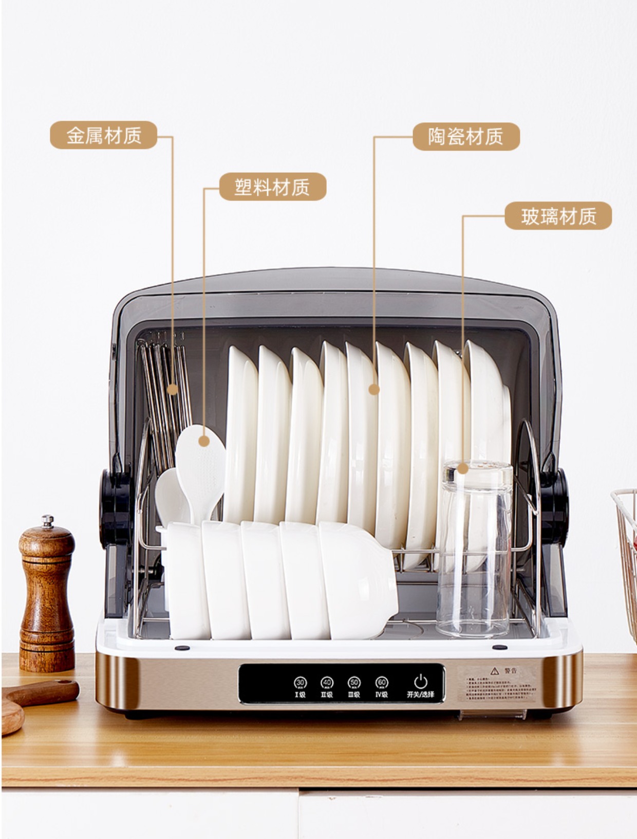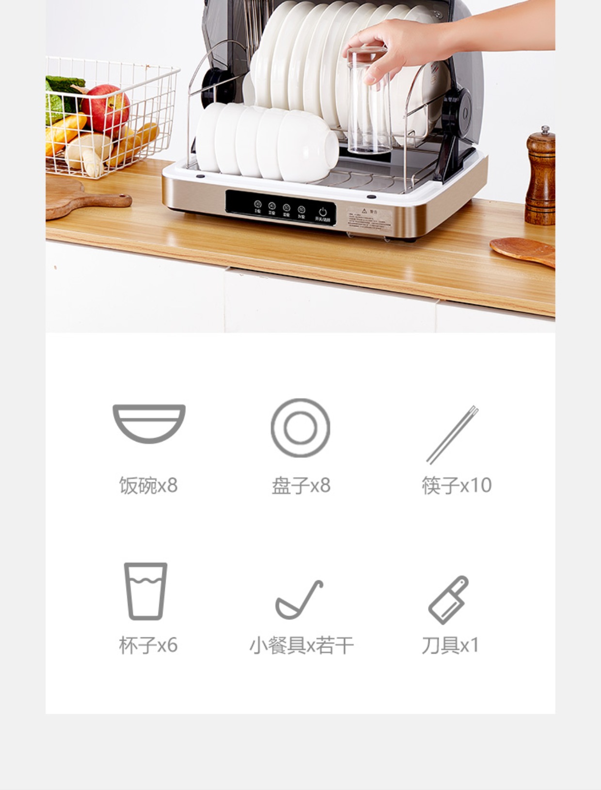 uv disinfection cabinet small household bowl chopsticks desktop drying sterilized cupboard tableware bowl and plates kitchen drain-free 中文版