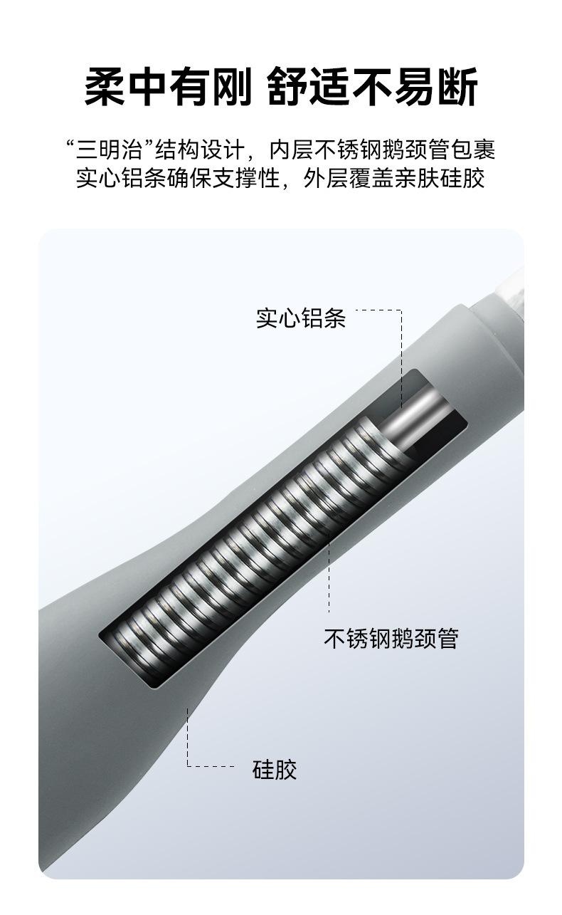 4、材质:亲肤硅胶+实心铝条,佩戴舒适