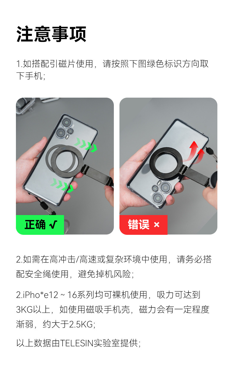 2、磁吸快拆,16颗强钕铁磁,超强磁吸设计,无惧掉落(配防丢手绳,两重安全保障)