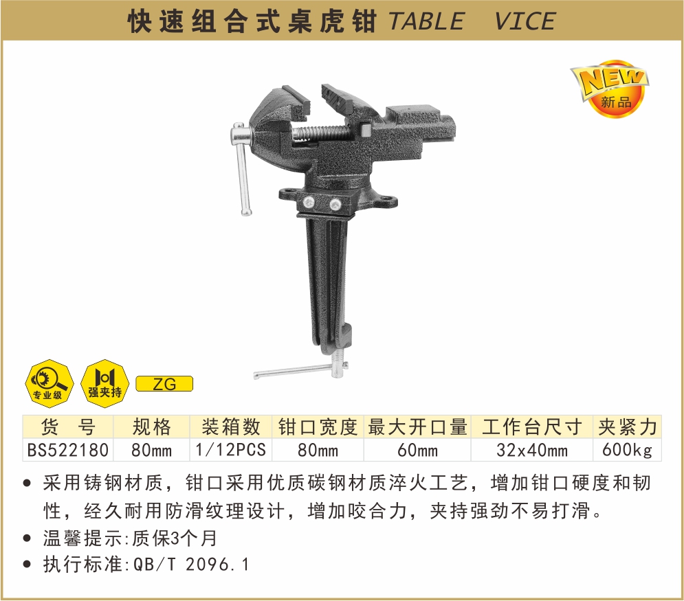 quick combination clamp-on bench vise 80mm