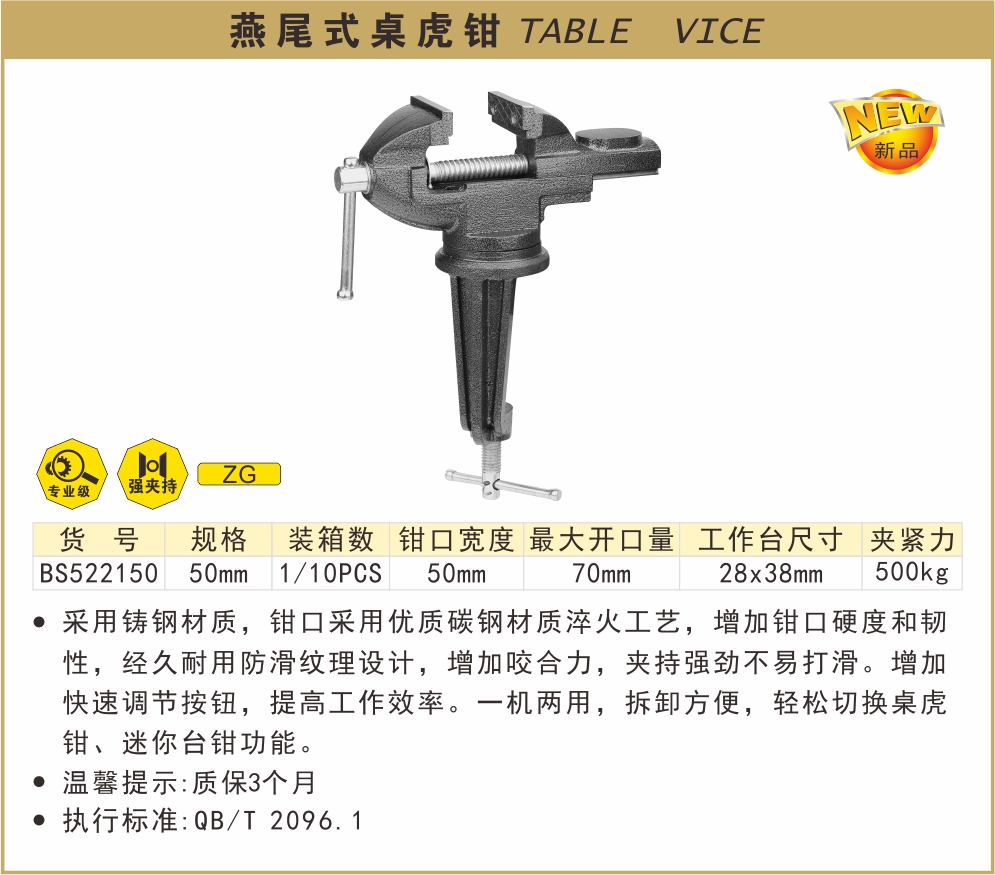 dovetail clamp-on bench vise 50mm
