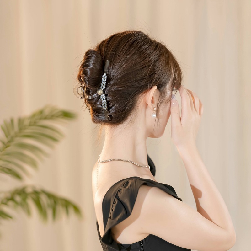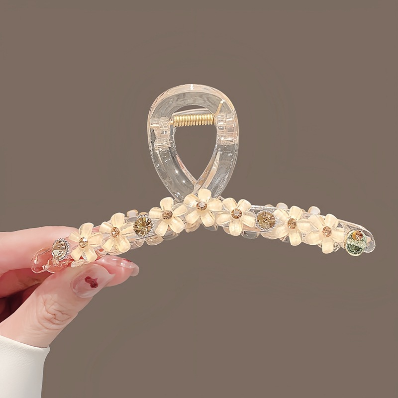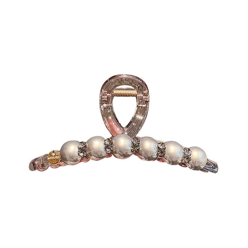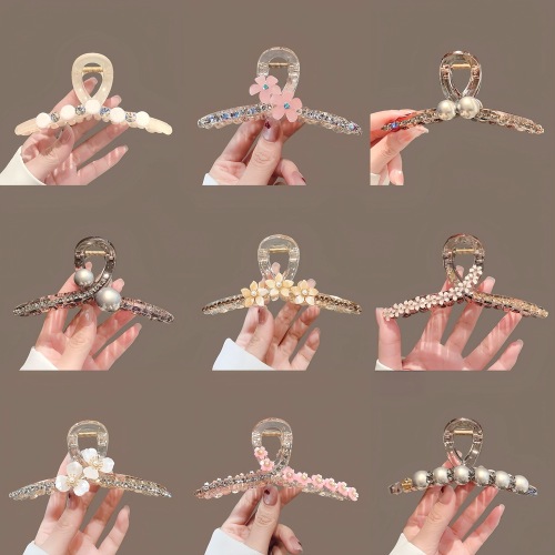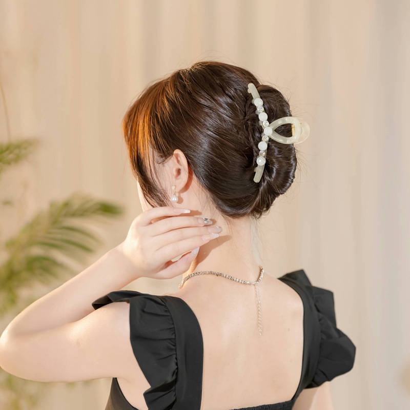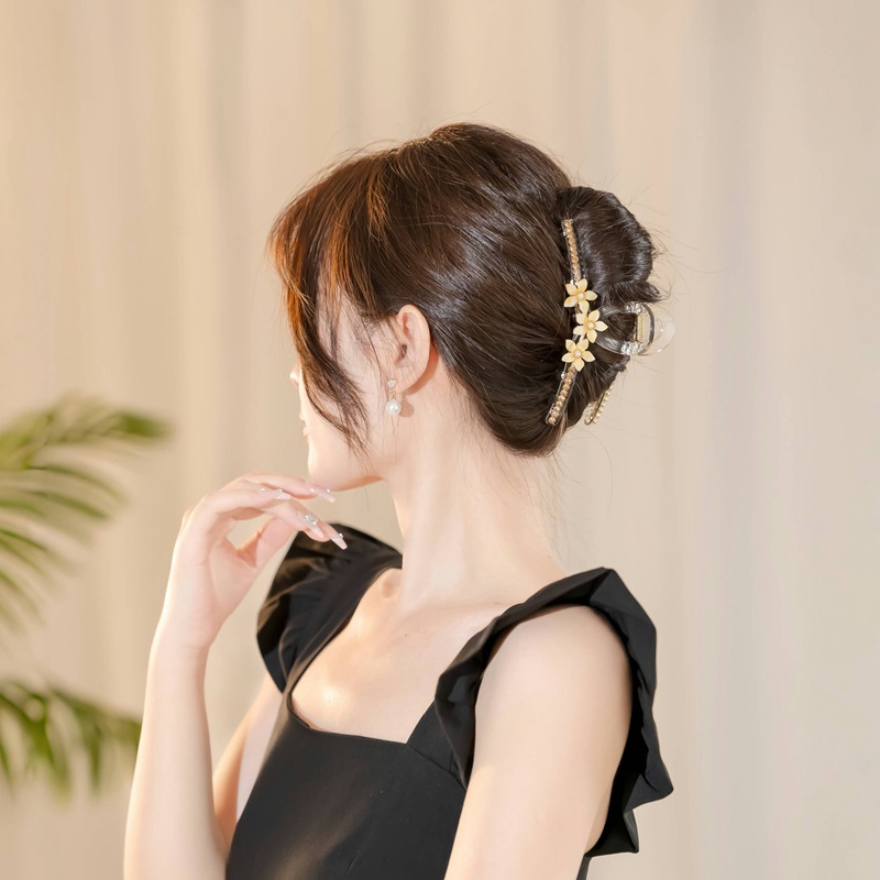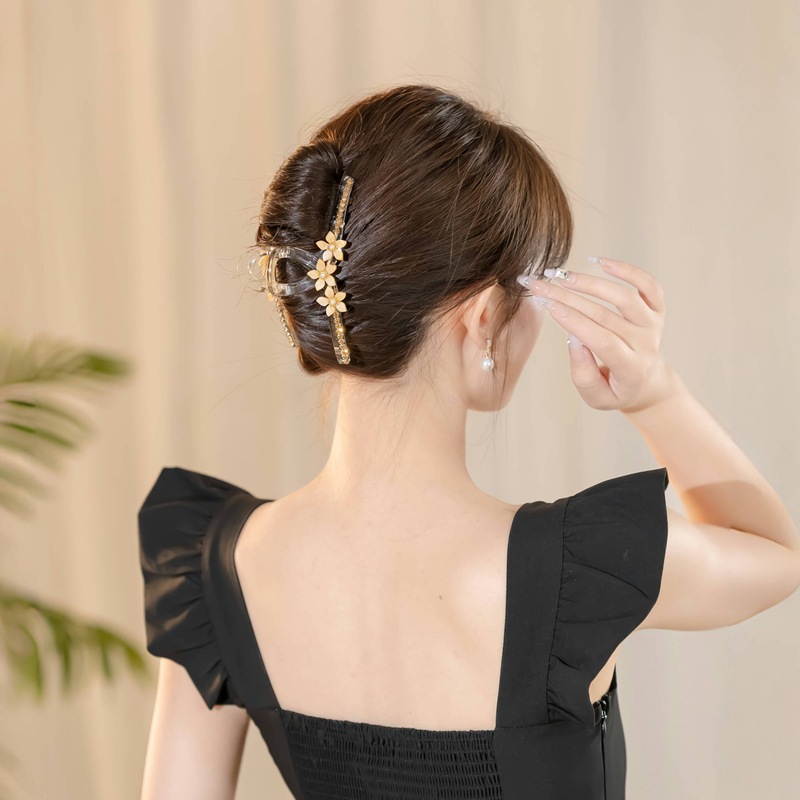 new flower pearl large grip high-end fashion acrylic hairpin back head updo shark clip 中文版