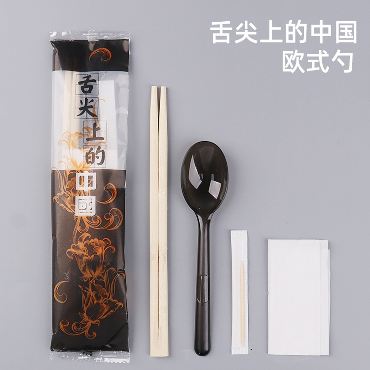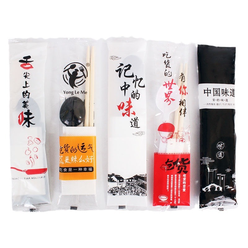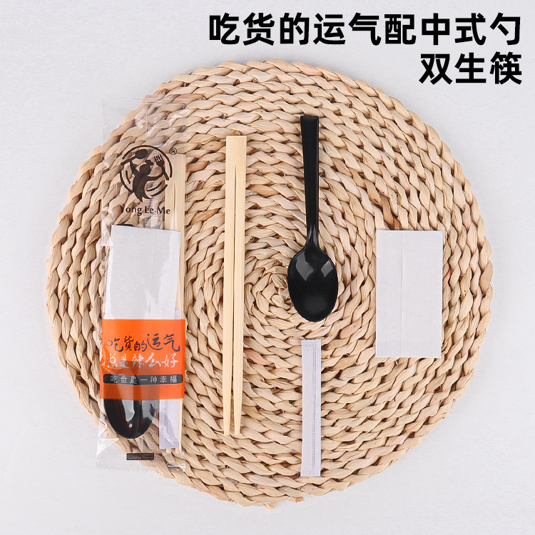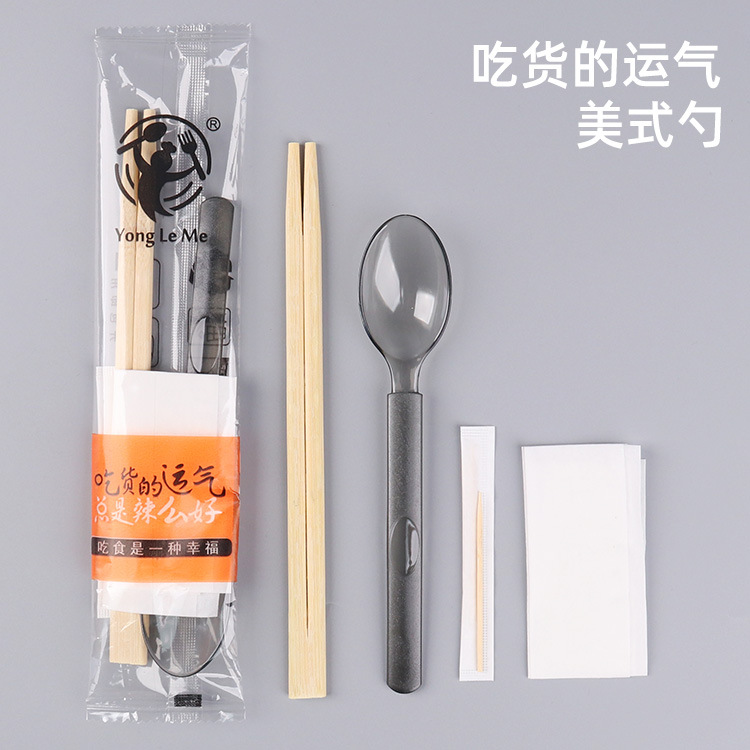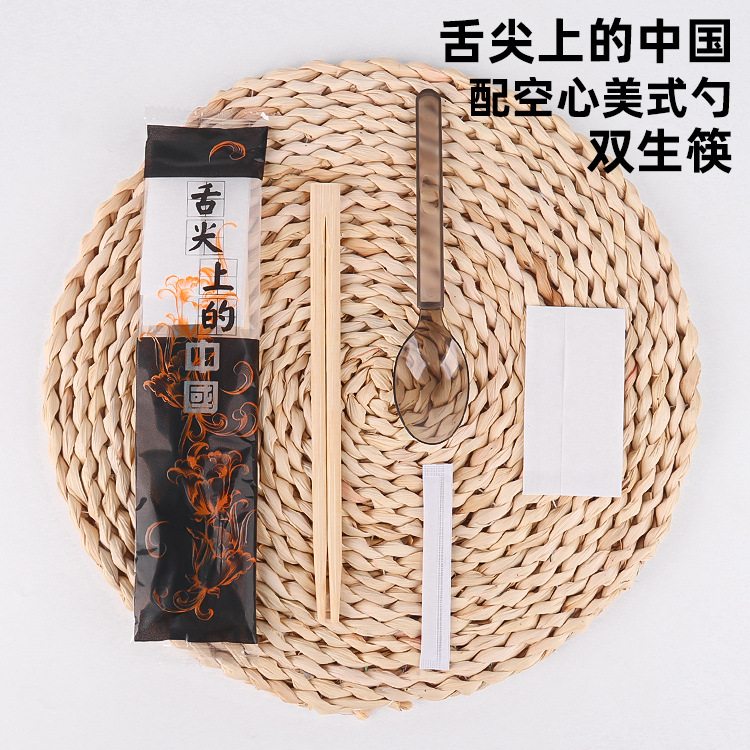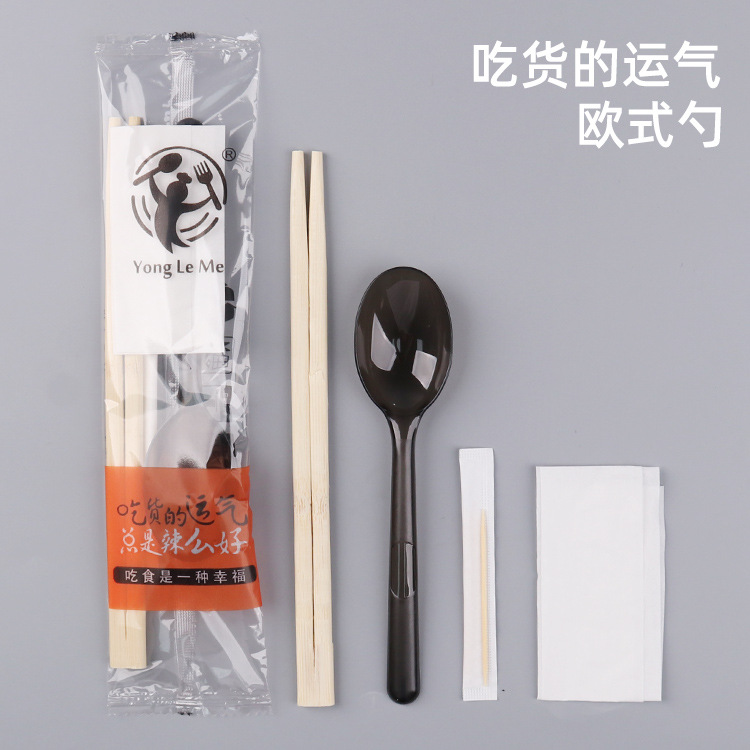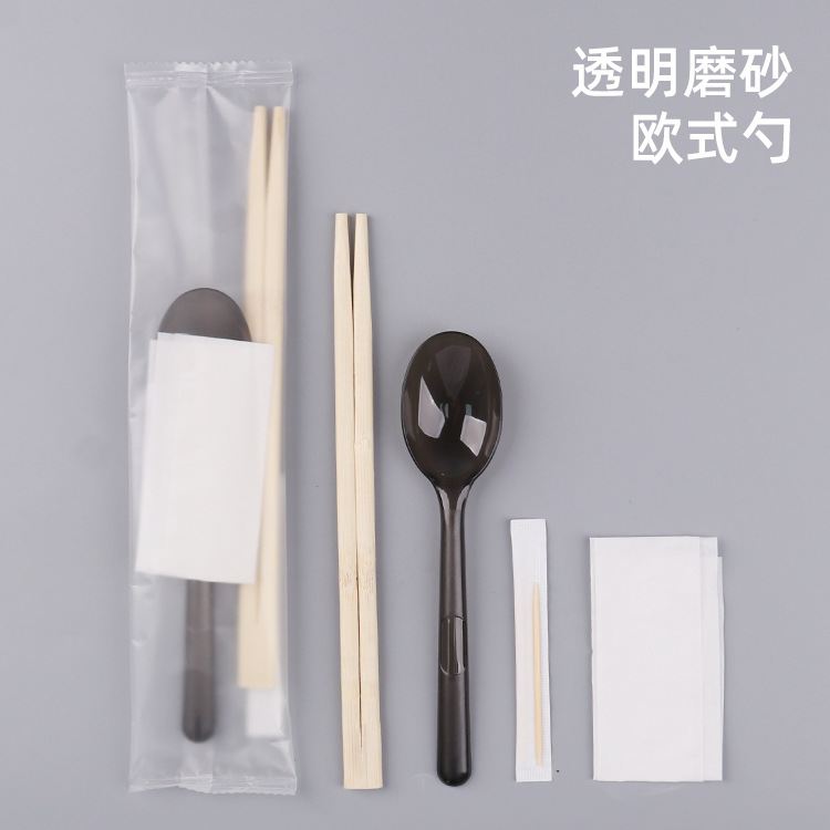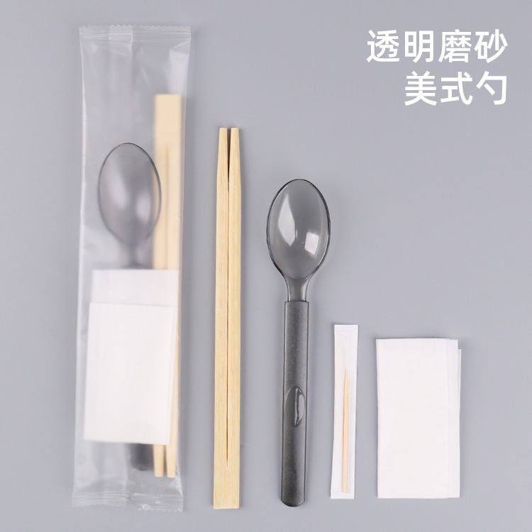 5.0 roundheaded chopsticks hardened chinese spoon transparent frosted film four-piece set (100 sets)
