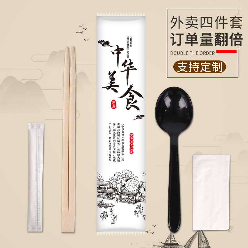[new] chinese four-piece set on the tip of american hollow spoon (twin chopsticks)(100 sets)