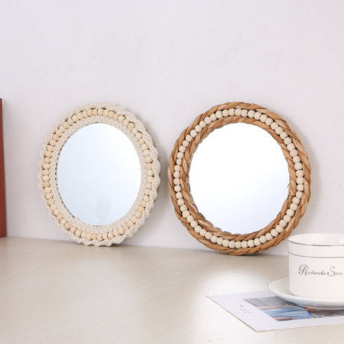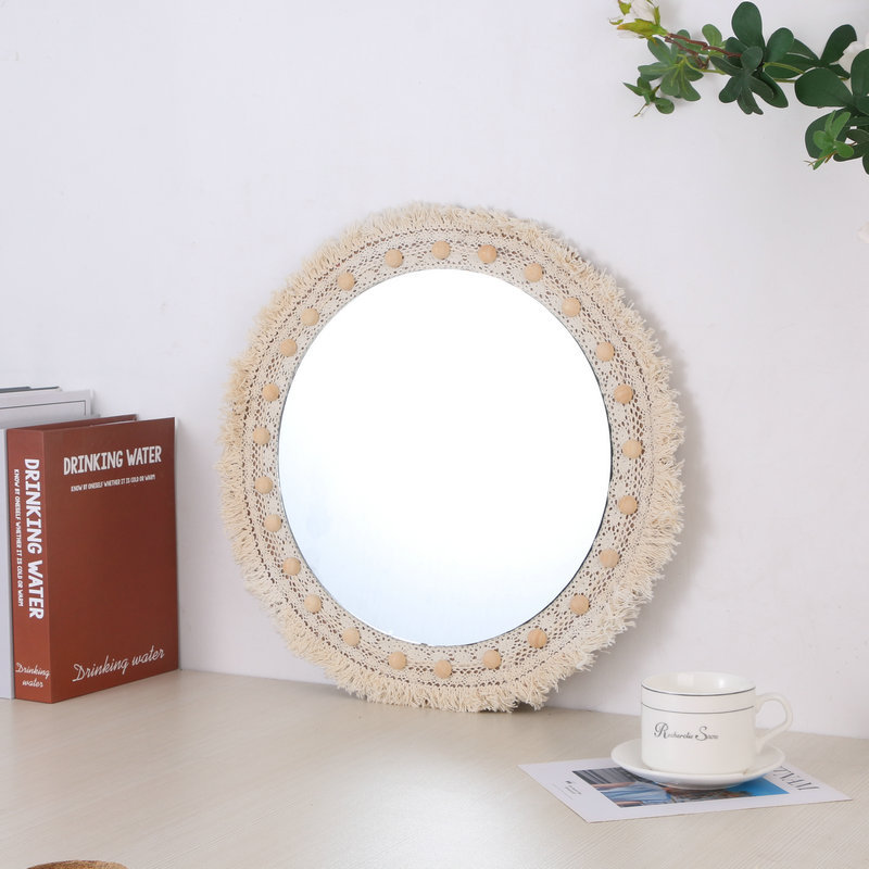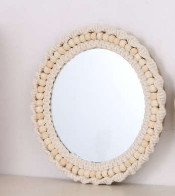 cross-border ins nordic hand-knitted cotton string lace wall decoration mirror cosmetic mirror home homestay decorative mirror sub-decorative mirror 中文版