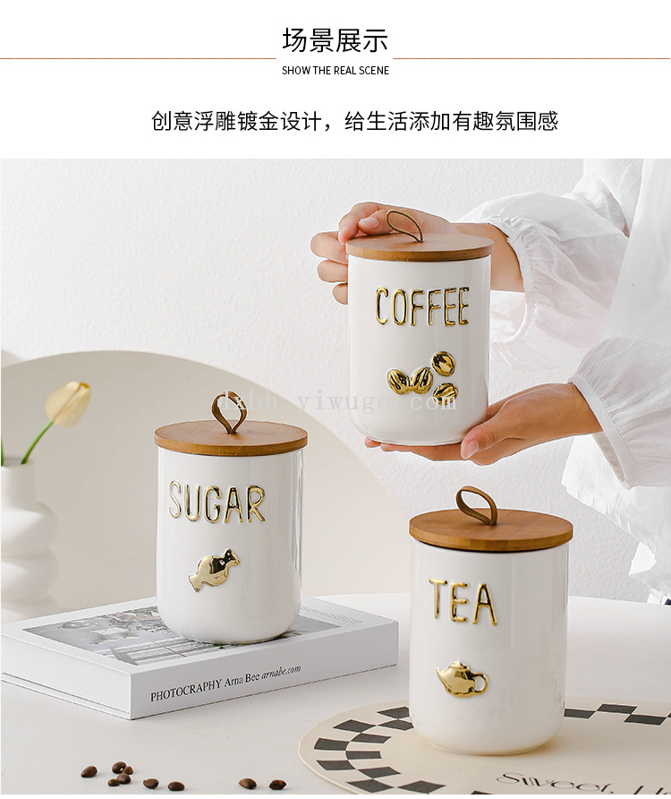 ceramic coffee pot sucrier sealed jar storage tank tea jar seasoning jar cereals storage tank