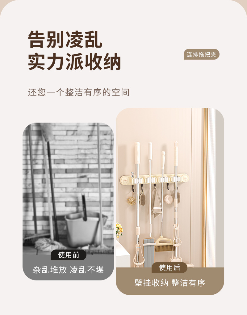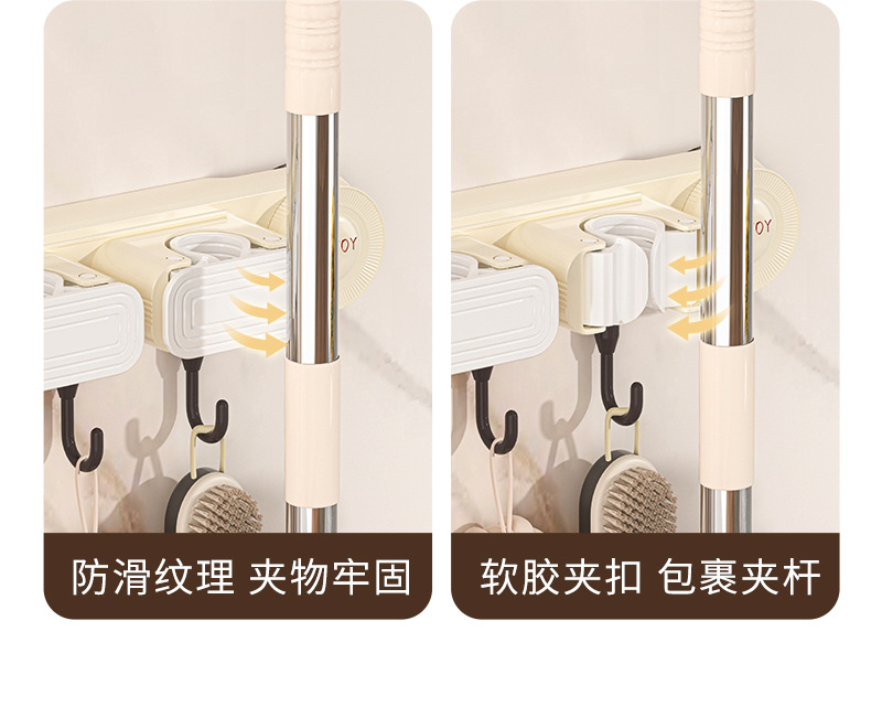 Mop hook wall-mounted clamp no drilling required