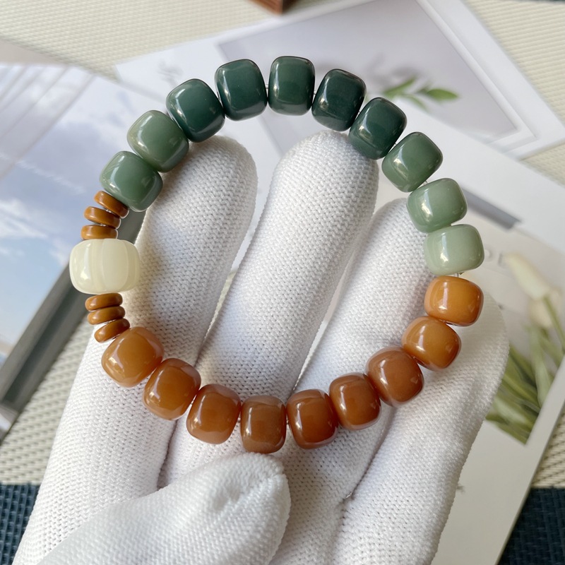 10x11 green gradient bodhi barrel bead bracelet