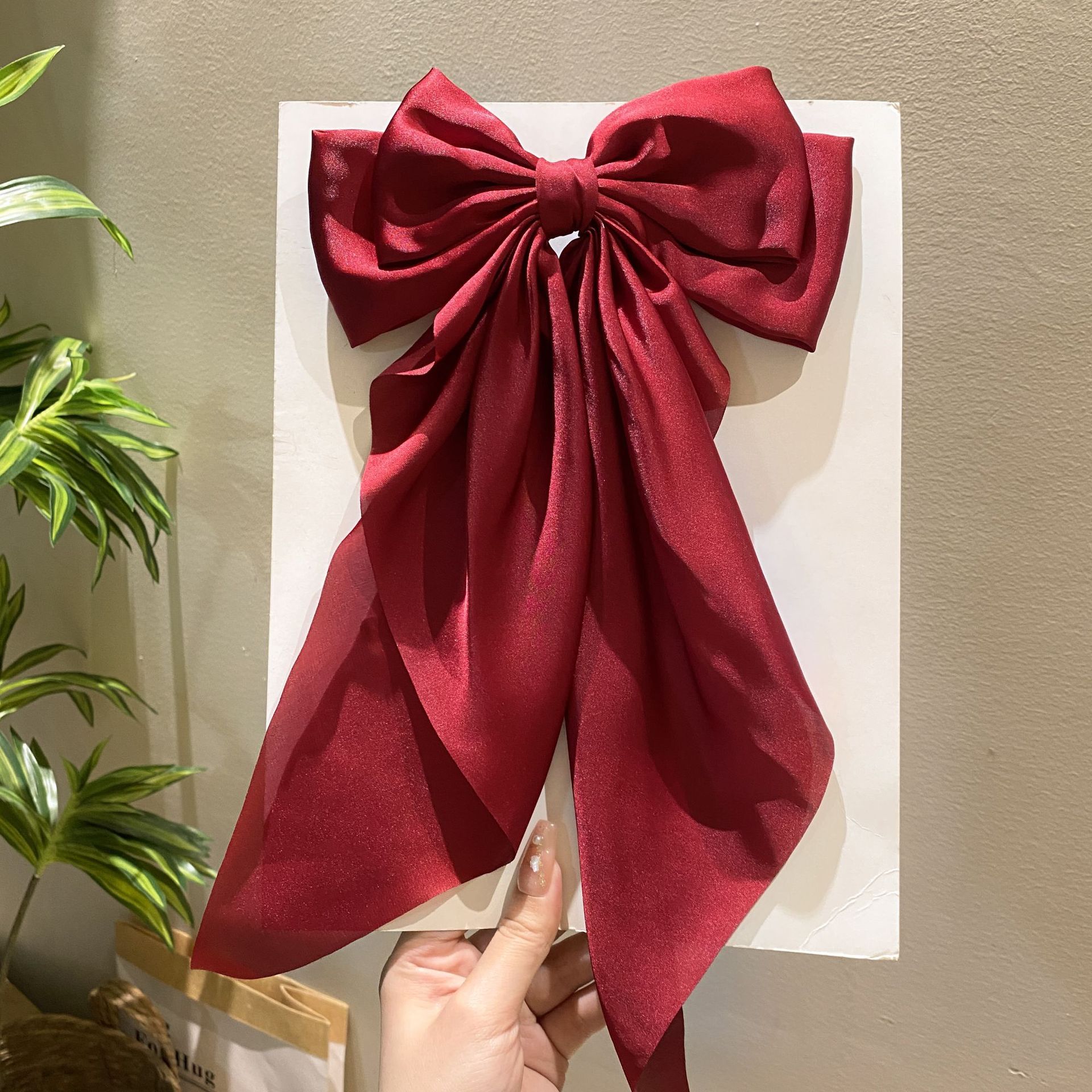 wine red long streamer spring clip
