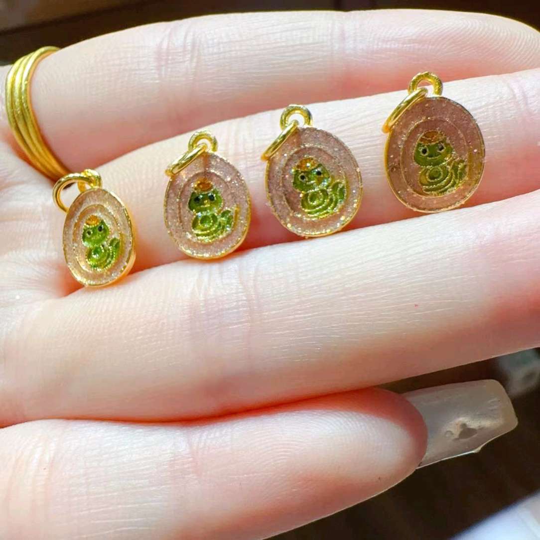 A super adorable snake pendant with a shiny gold border and a cute green snake in a transparent background, it is both exquisite and lively. Used as a small decoration for bracelets and necklaces, it instantly makes the jewelry stand out and attract attention.